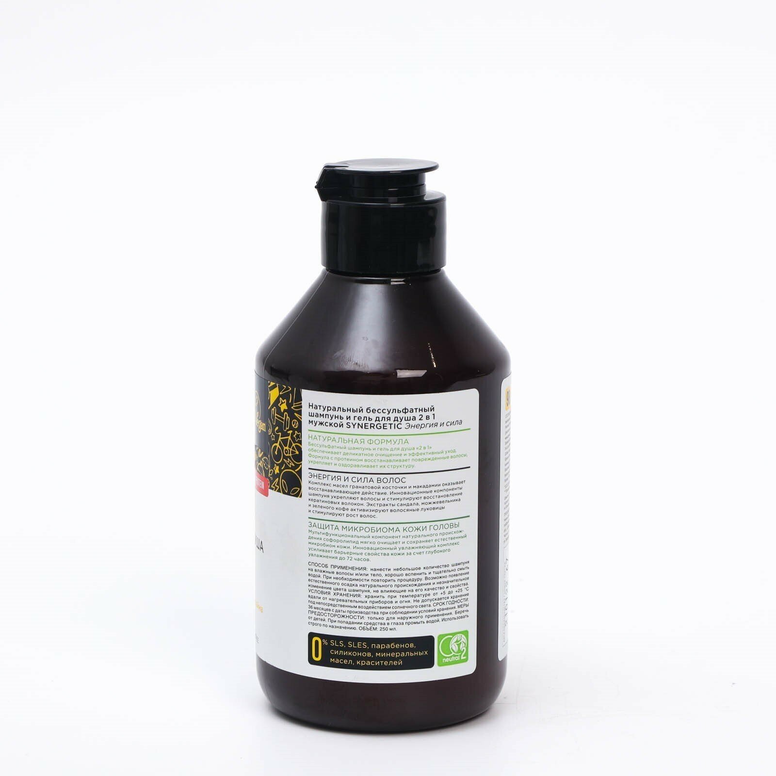 Натуральный бессульфатный шампунь и гель для душа "SYNERGETIC", 2 в 1, мужской, "Энергия и сила", 250 мл (комплект из 6 шт)
