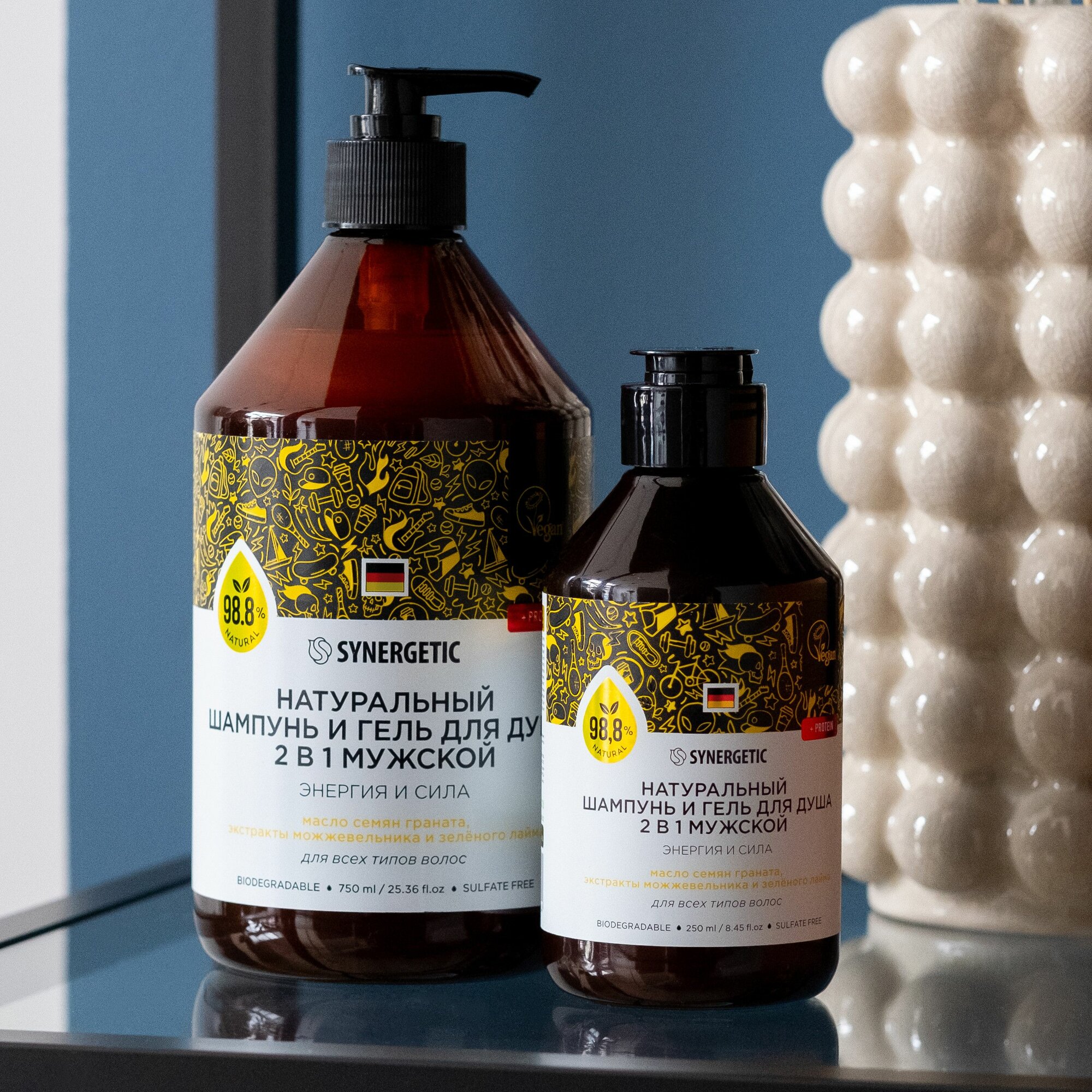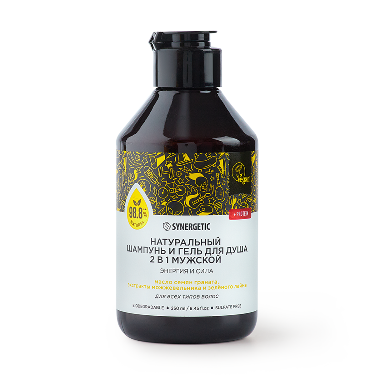 Шампунь и гель для душа 2в1 SYNERGETIC для мужчин "Энергия и сила" натуральный, бессульфатный, 750мл