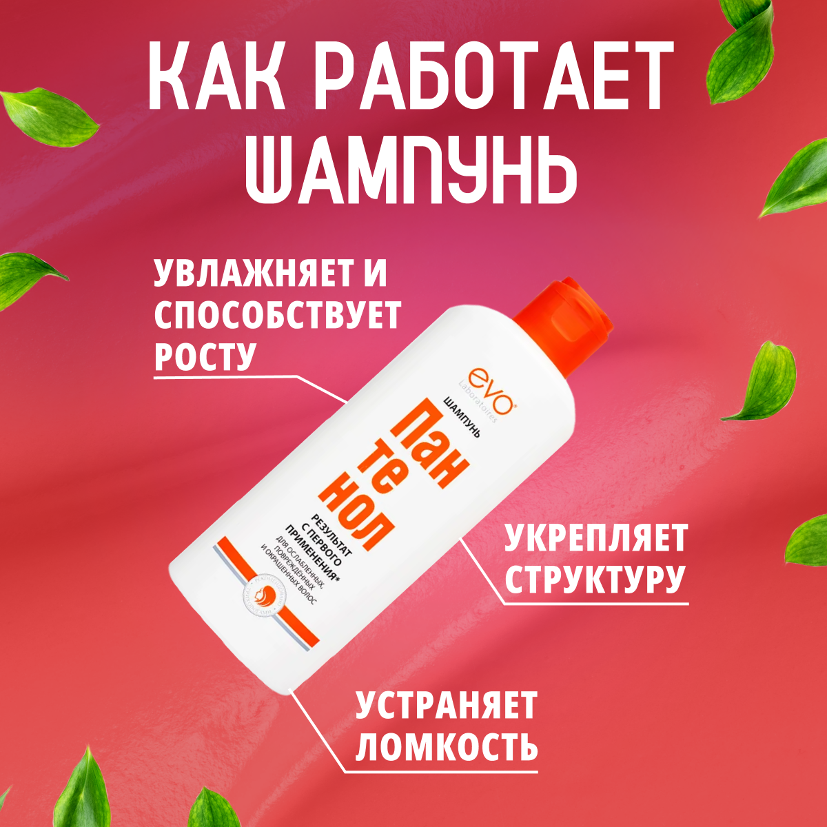 | Способ применения | небольшое количество шампуня нанести на влажные волосы, аккуратно взбить пену, помассировать кожу головы, промыть волосы. При необходимости повторить процедуру. Для достижения наибольшего эффекта и лучшего восстановления волос используйте комплексно с Маской-бальзамом ПАНТЕНОЛ EVO. После 30 дней регулярного использования сделать перерыв на 2-3 недели, после этого возобновить применение |