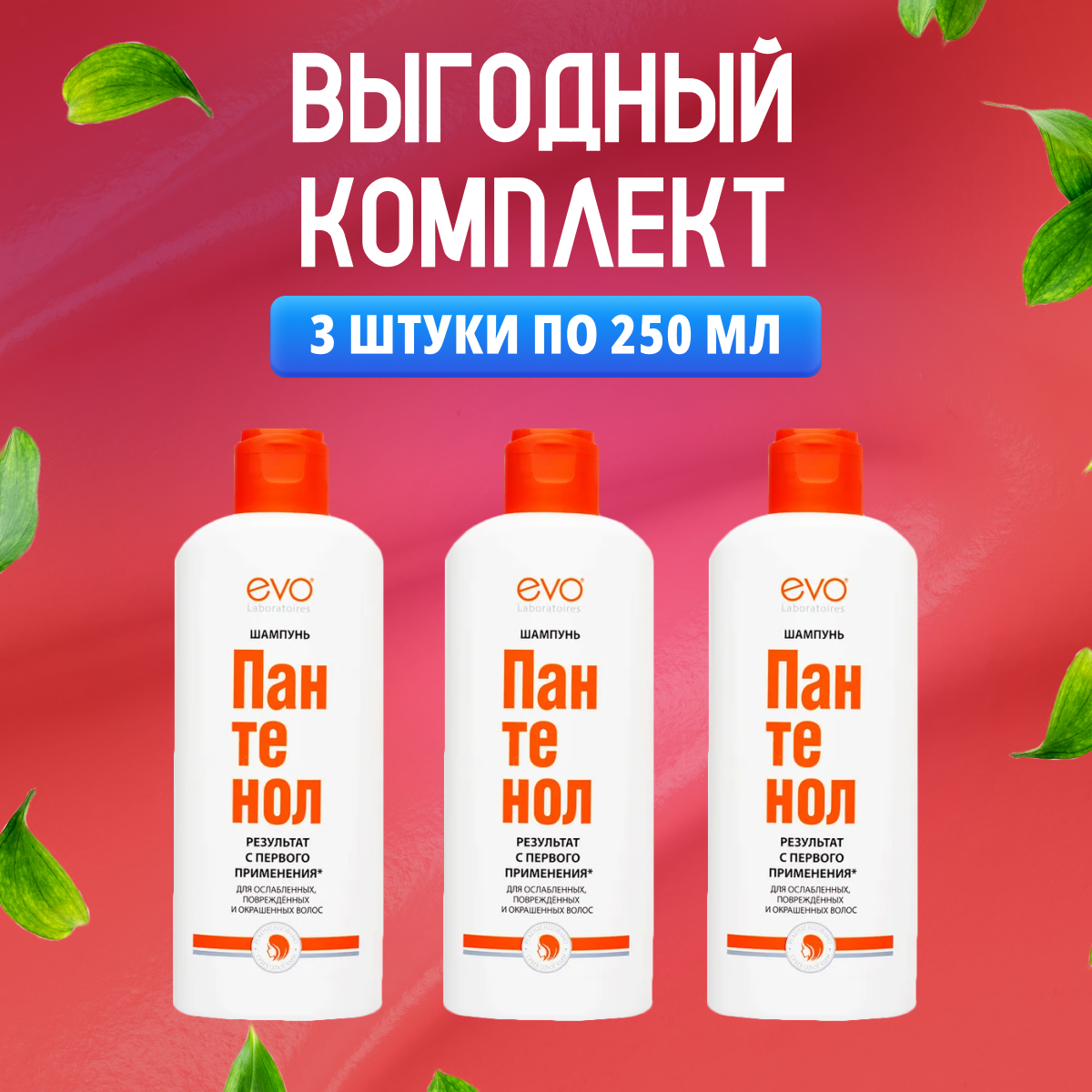 Купить Набор из 3 штук Шампунь для волос пантенол EVO 250мл для ослабленных, поврежденных, окрашенных и сухих волос6