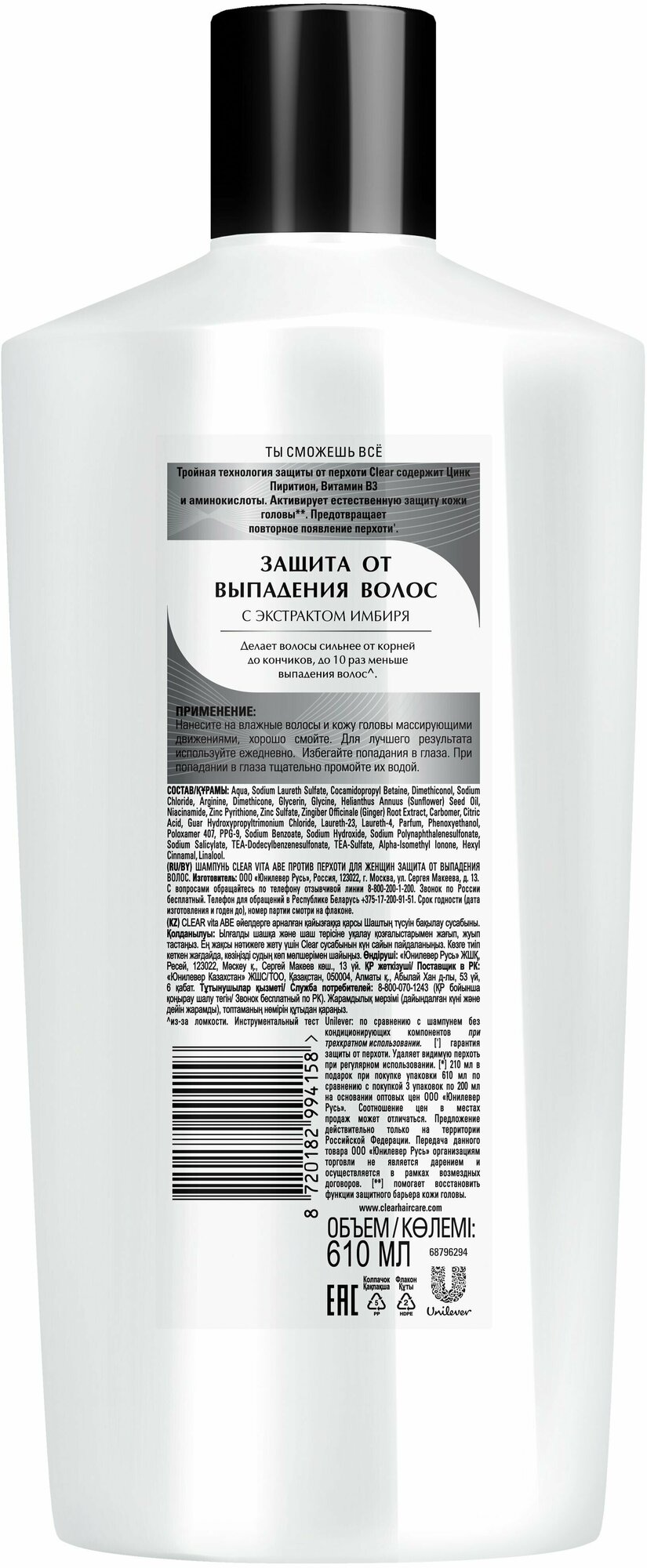 Шампунь против перхоти Clear Защита от выпадения волос, 610 мл
