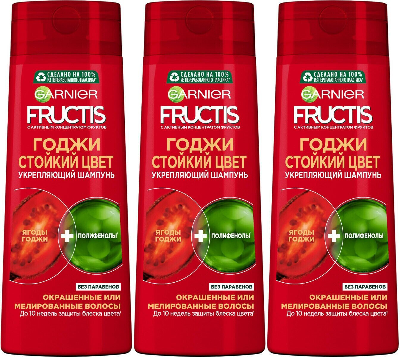 GARNIER Шампунь для волос Fructis Годжи Стойкий цвет, укрепляющий для окрашенных или мелированных волос, 400 мл - 3 шт