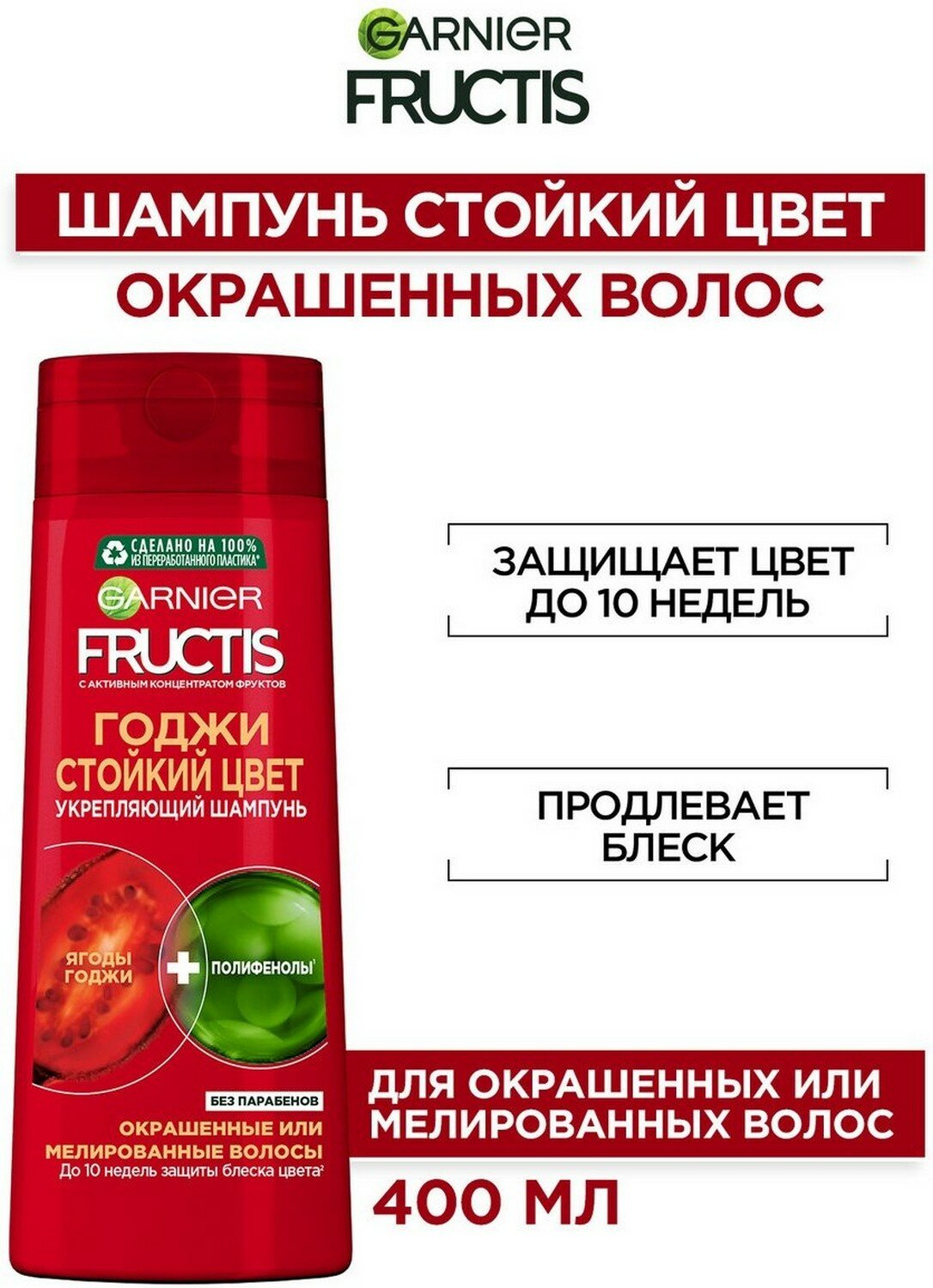 GARNIER Шампунь для волос Fructis Годжи Стойкий цвет, укрепляющий для окрашенных или мелированных волос, 400 мл - 1 шт