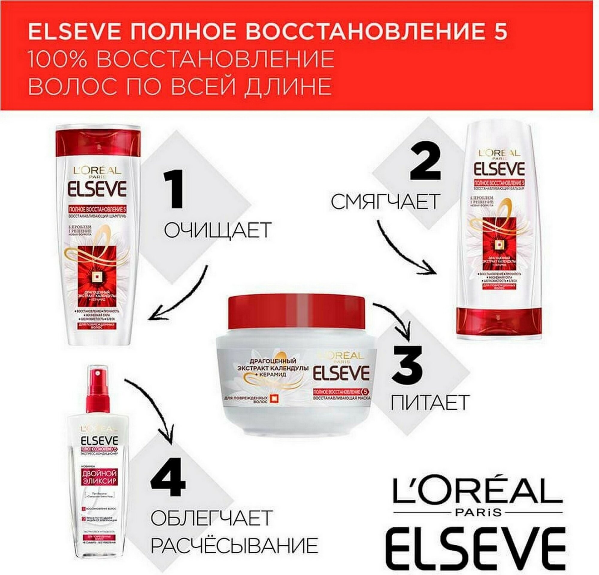 L'Oreal Paris Шампунь для волос Elseve Полное восстановление 5, для поврежденных волос, 400 мл - 2 шт