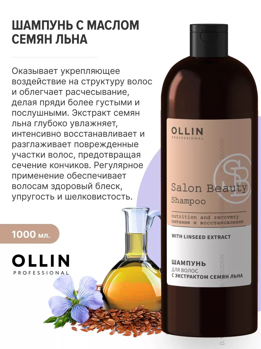 Шампунь SALON BEAUTY для ухода за волосами OLLIN PROFESSIONAL с экстрактом семян льна 1000 мл - 2 шт
