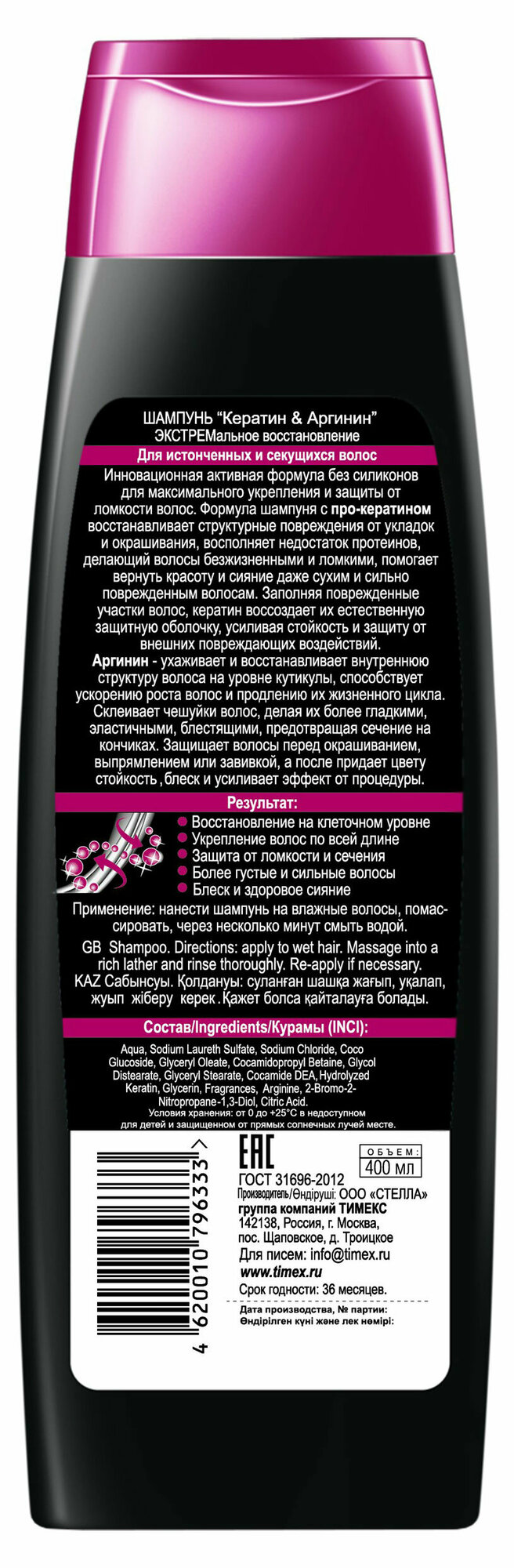 | Активный ингредиент | аргинин / бетаин / глицерин / кератин / протеины |