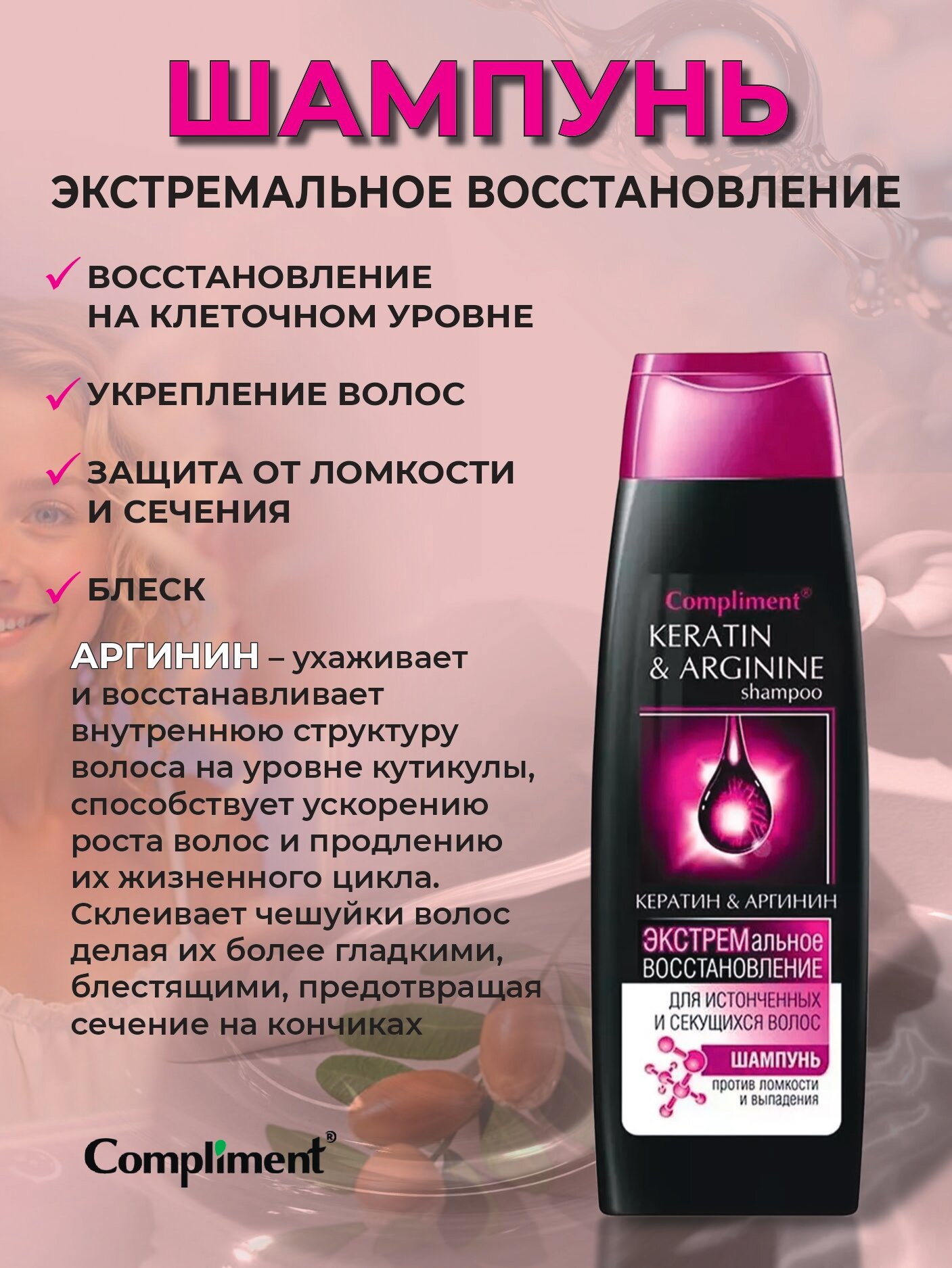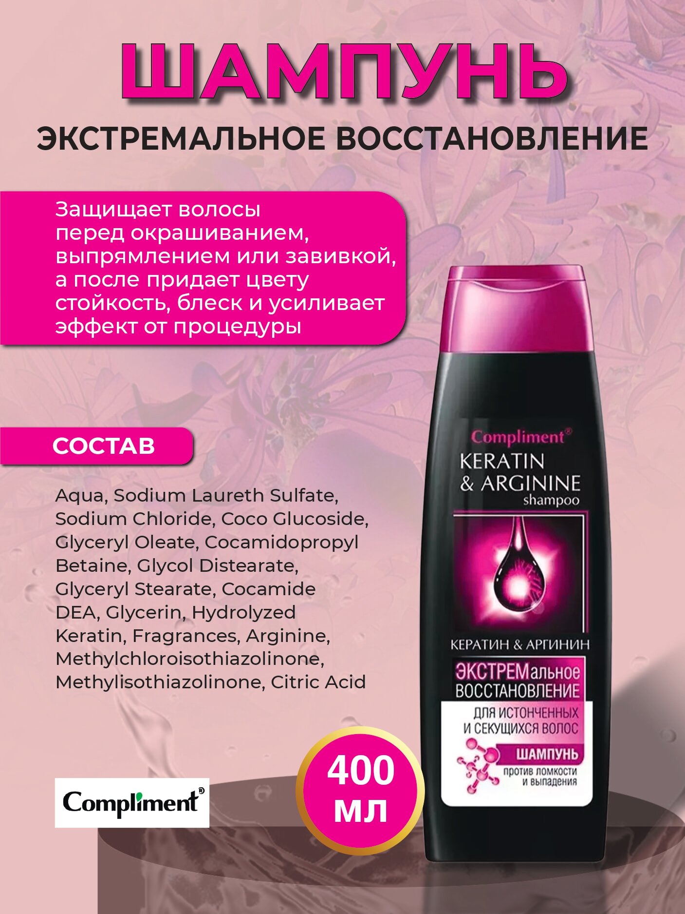 Купить Compliment Шампунь кератин и аргинин Экстремальное восстановление для истонченных и секущихся волос 400 мл