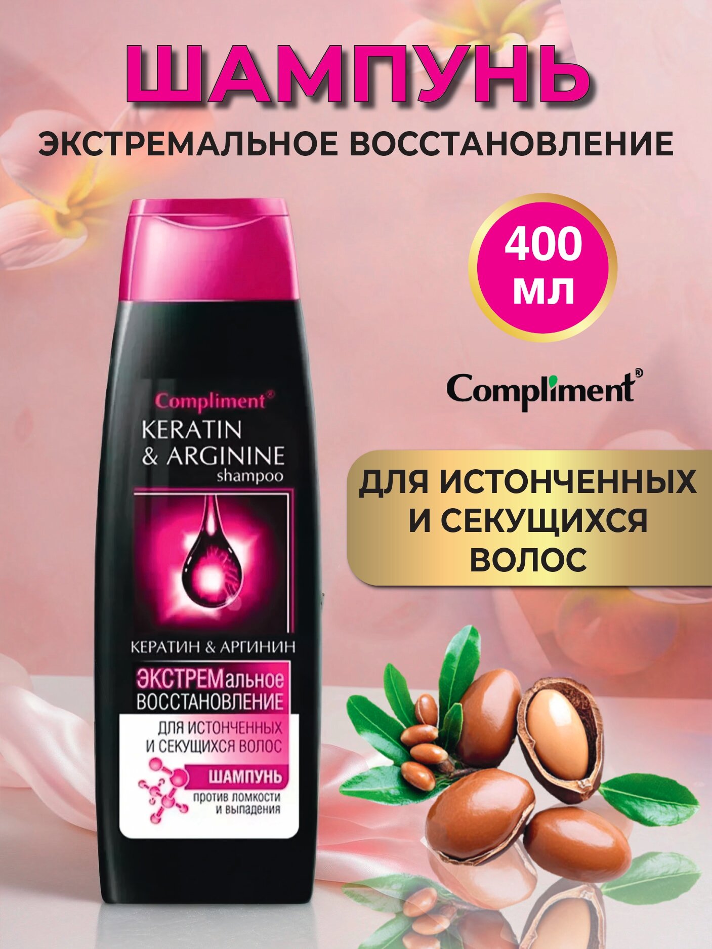 Compliment Шампунь "Кератин & Аргинин", для истонченных и секущихся волос, 400 мл