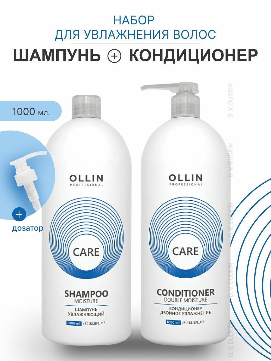 Купить OLLIN Professional набор для увлажнения волос CARE MOISTURE: шампунь, 1000 мл + кондиционер 1000 мл + дозатор
