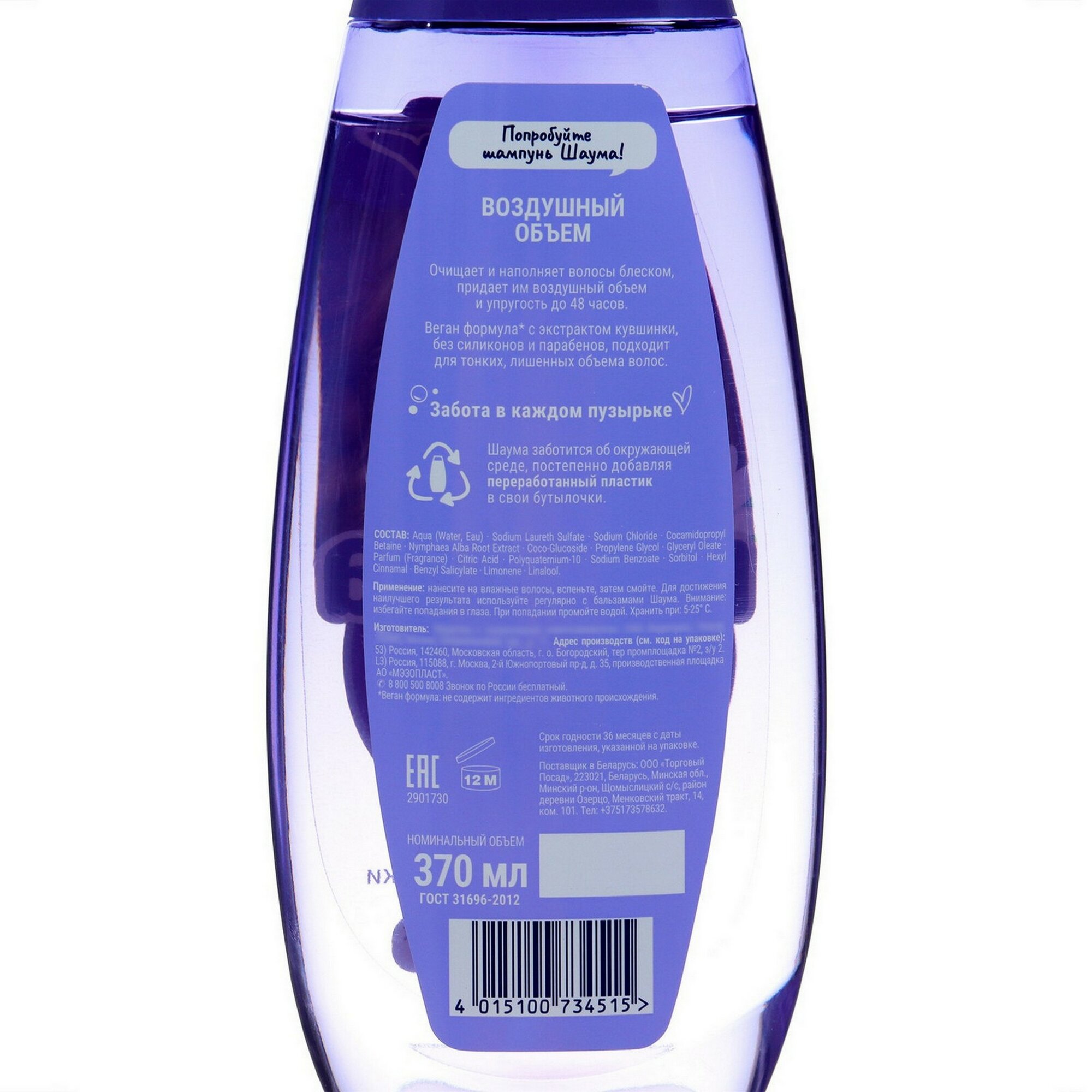 Шаума Шампунь для тонких, лишенных объема волос женский Воздушный объем, 370 мл