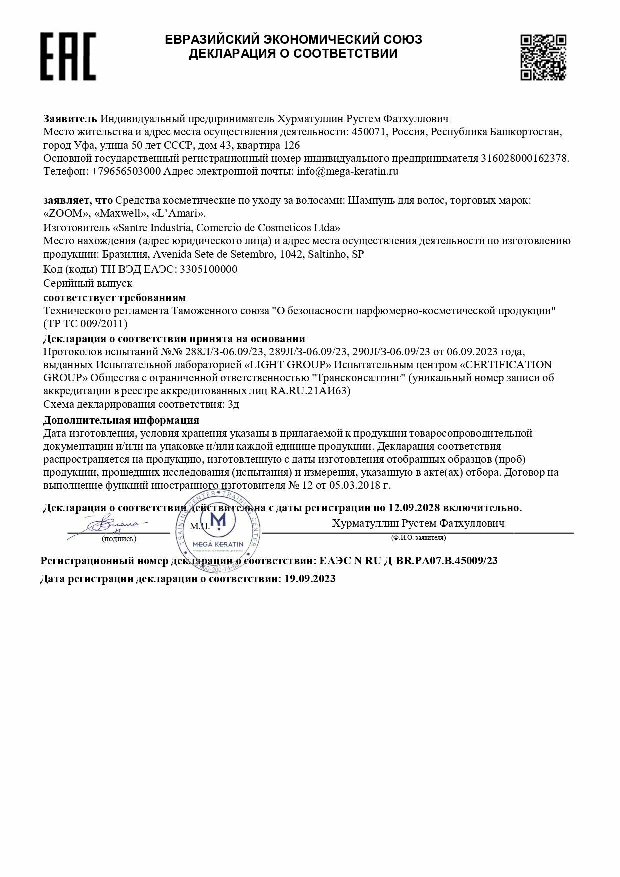 Комплект для домашнего ухода: ZOOM Keratin Shampoo 250 ml + ZOOM Keratin Mask 250 ml интересное: