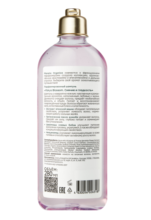 Парфюмированный шампунь "Tokyo Blossom" сияние и гладкость Planeta Organica Soul&Travel, 280 мл интересное: