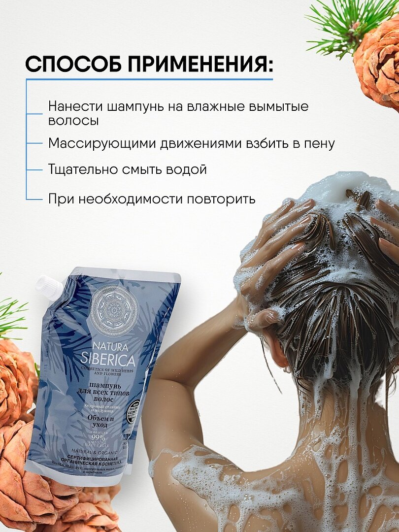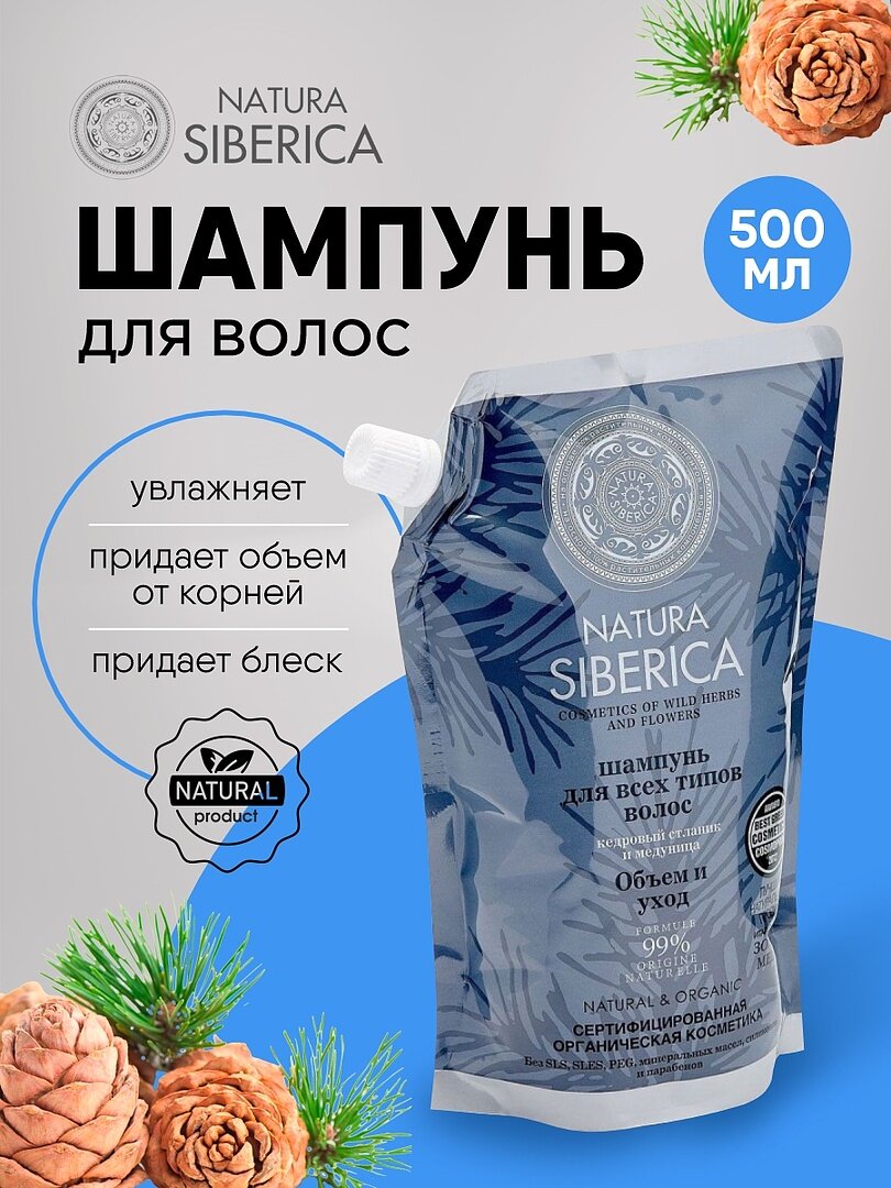 Шампунь для объема волос Natura Siberica для всех типов волос увлажняющий дой пак 500 мл интересное: