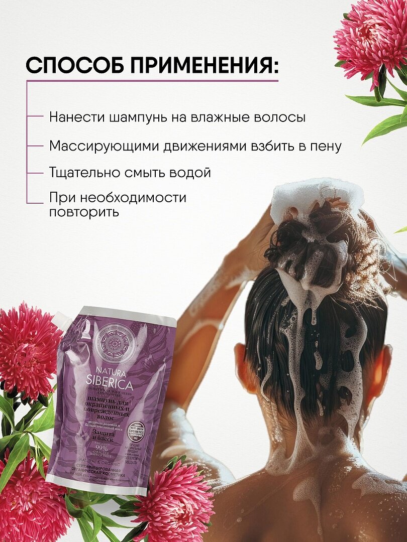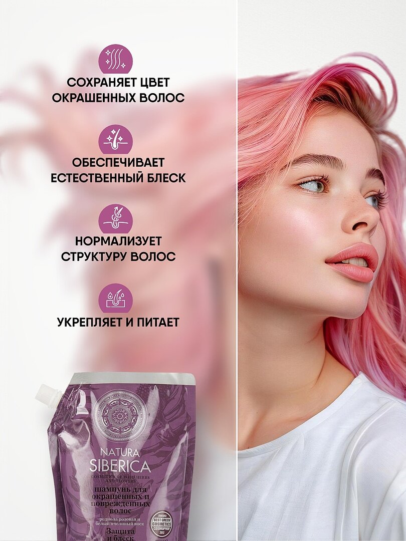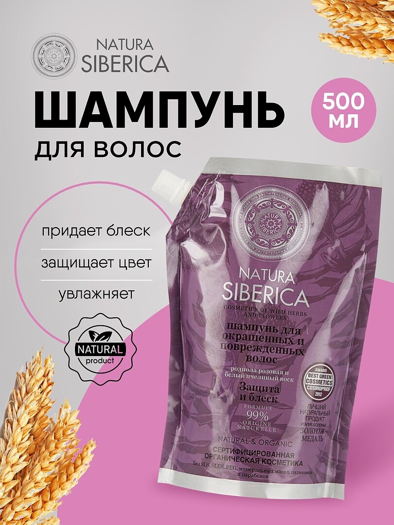 Купить Шампунь Natura Siberica для окрашенных волос "Защита и блеск" дой-паки, 500 мл