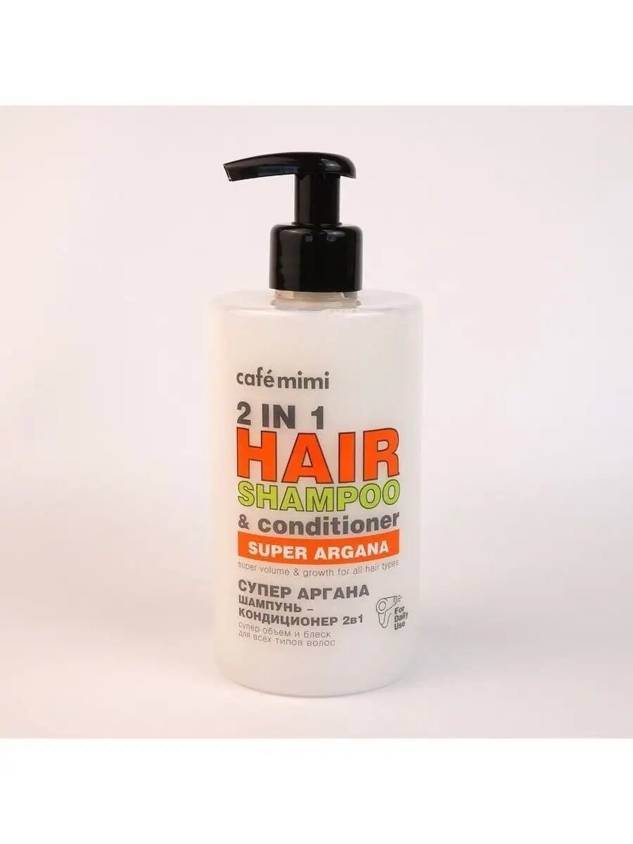 Купить Шампунь-кондиционер для волос 2 в 1 Супер Аргана Супер объём и рост Cafe mimi 450 мл