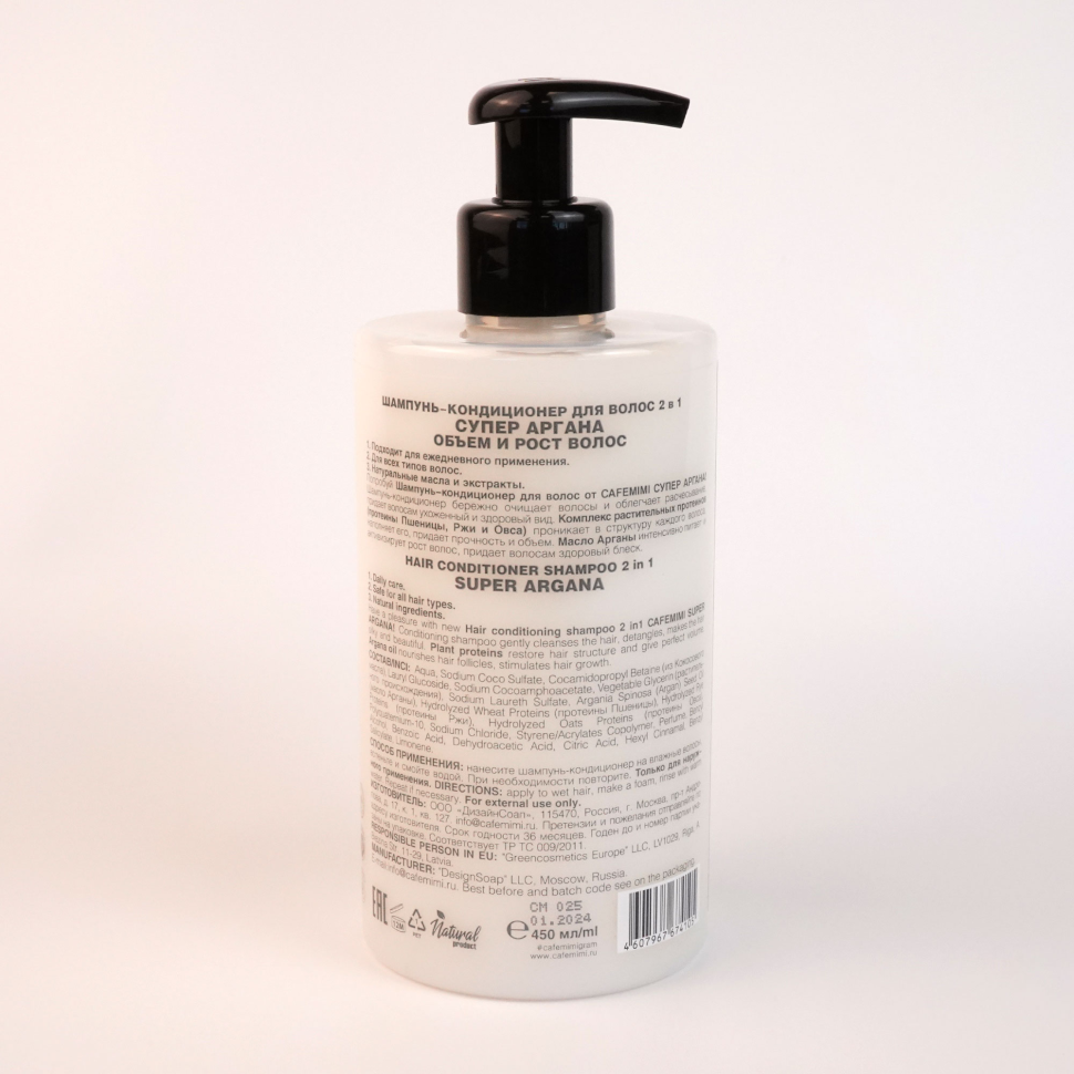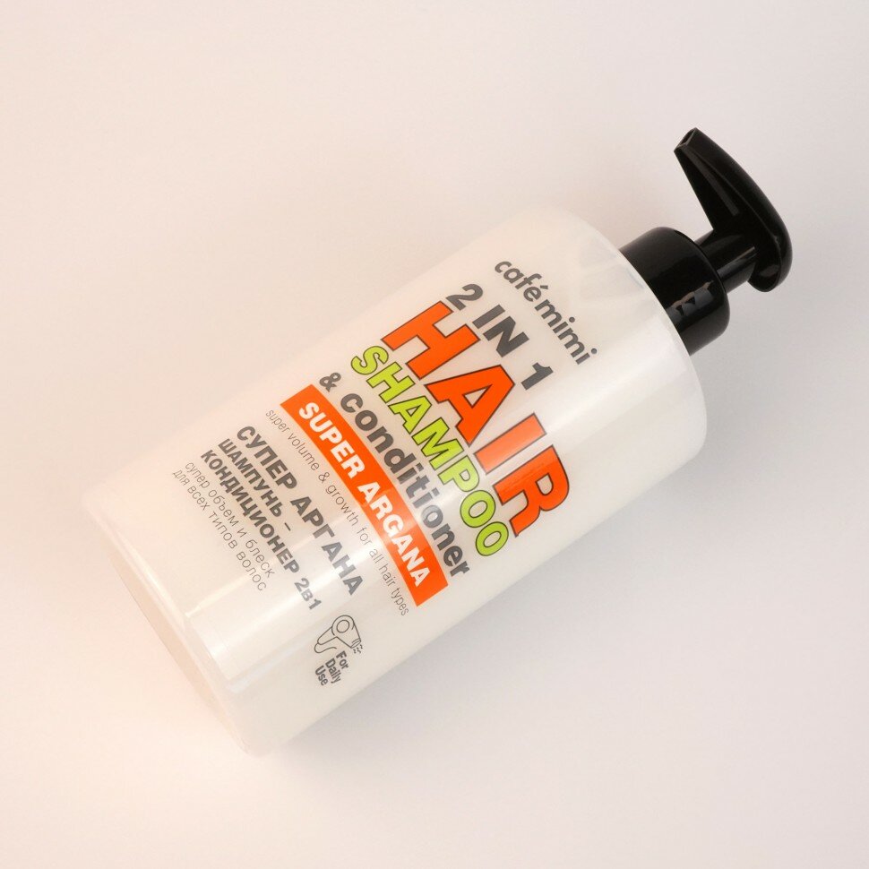 CAFE MIMI Шампунь-кондиционер для волос 2 в 1 Супер Аргана Супер объем и рост, 450 мл