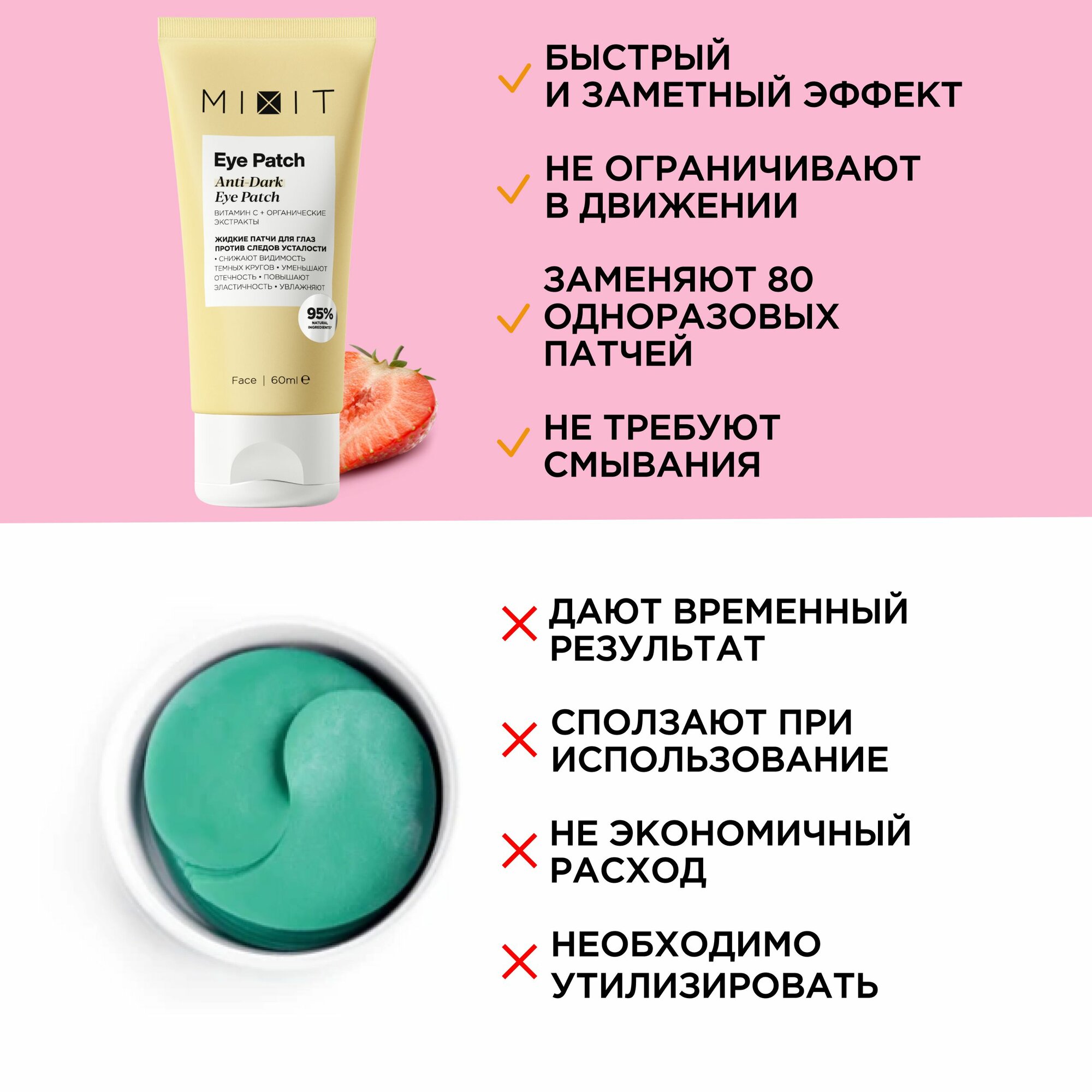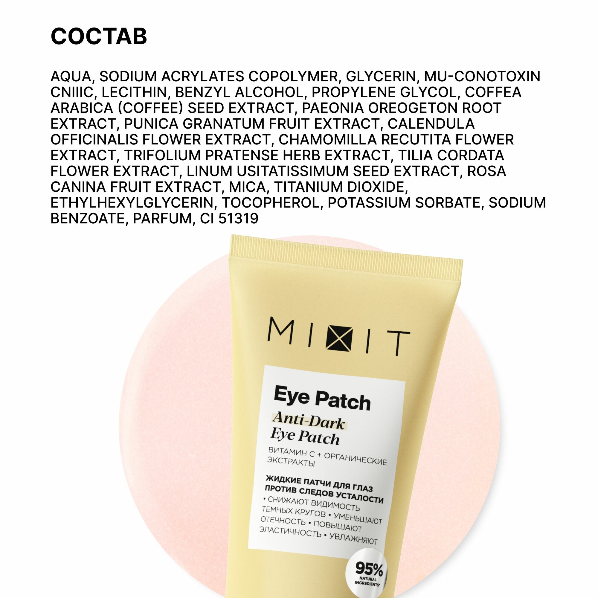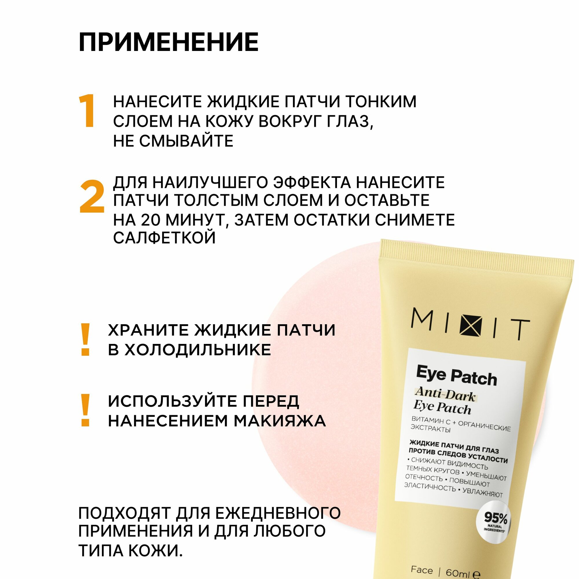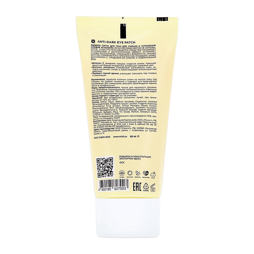 MIXIT Жидкие гелевые патчи против темных кругов и отеков с витамином C, 60 мл интересное:
