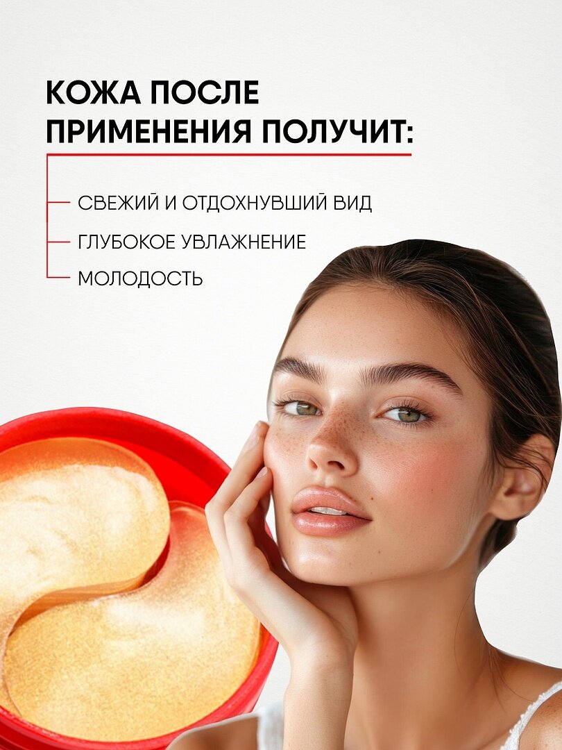 | Способ применения | нанесите патчи на очищенную область под глазами и/или на области. Оставьте на 15-20 минут. Вбейте остатки сыворотки кончиками пальцев до полного впитывания. Нанесите крем для век. Подходят для ежедневного применения. |