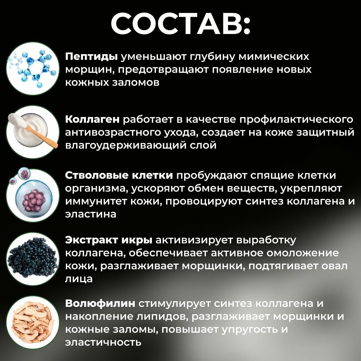 | Эффект | восстановление / лифтинг / омоложение / от кругов под глазами / от морщин / от отеков / питание / повышение упругости / снятие воспалений / снятие отеков / тонизирование / увлажнение / улучшение цвета |