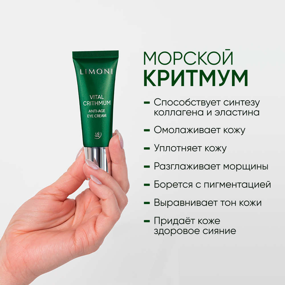 LIMONI Крем-лифтинг для глаз антивозрастной от морщин, отеков и мешков под глазами с критмумом, 25 мл интересное: