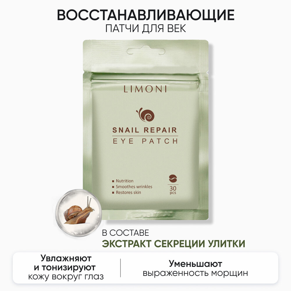 Восстанавливающие патчи для глаз тканевые с экстрактом секреции улитки Snail Repair Eye Patch, 30 шт. интересное: