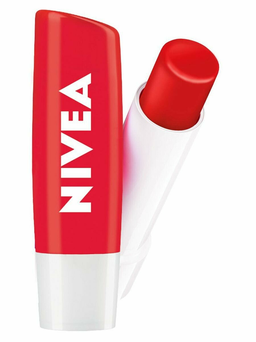 NIVEA Бальзам для губ "Клубничное сияние" с маслом дерева ши и витаминами С и Е, 4,8 гр, красный