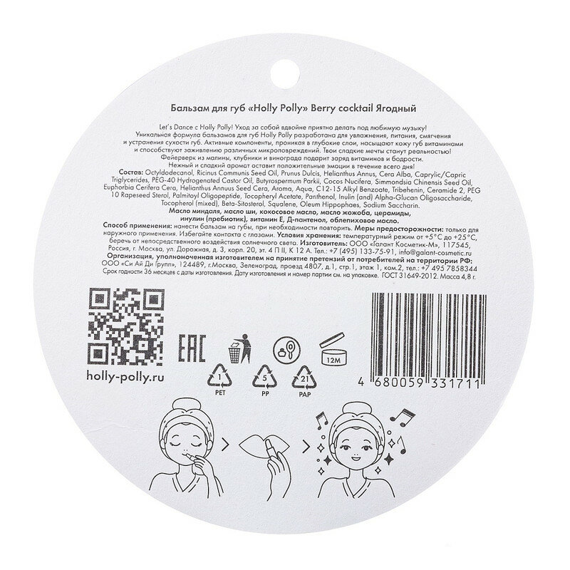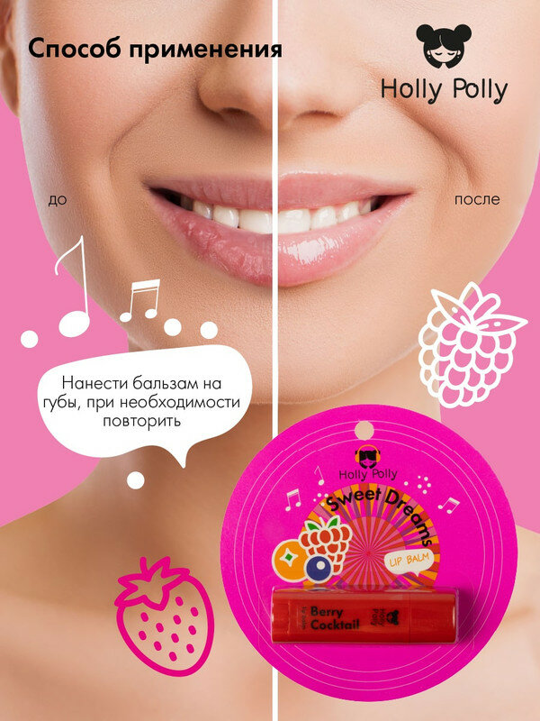 Бальзам для губ HOLLY POLLY Sweet Dreams "Ягодный", 4,8 г интересное: