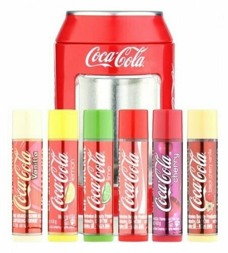 | Состав набора | бальзам для губ Coca-Cola, 4 г; бальзам для губ Coca-Cola Cherry, 4 г; бальзам для губ Coca-Cola Vanilla, 4 г; бальзам для губ Sprite, 4 г; бальзам для губ Fanta Orange, 4 г; бальзам для губ Fanta Strawberry, 4 г |
