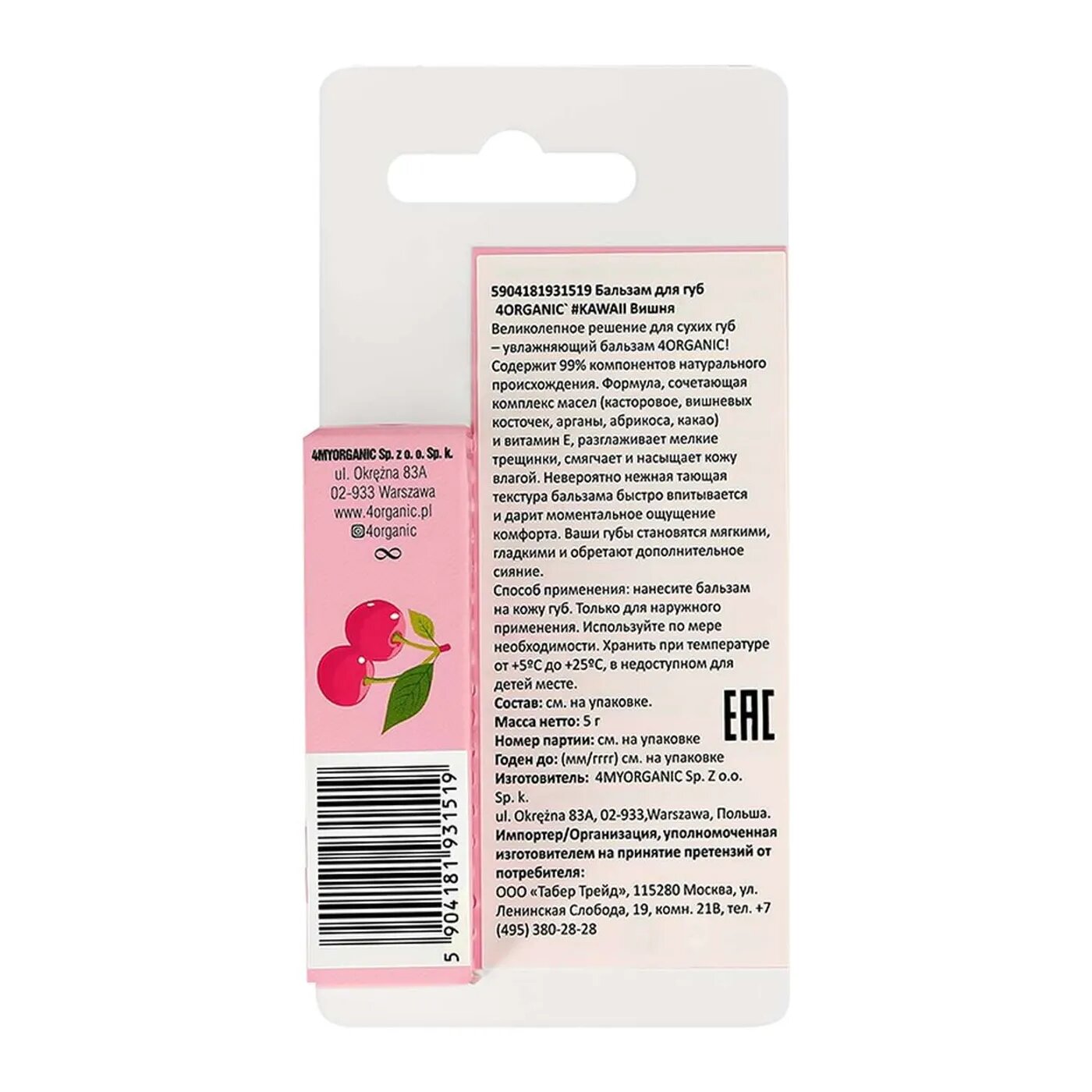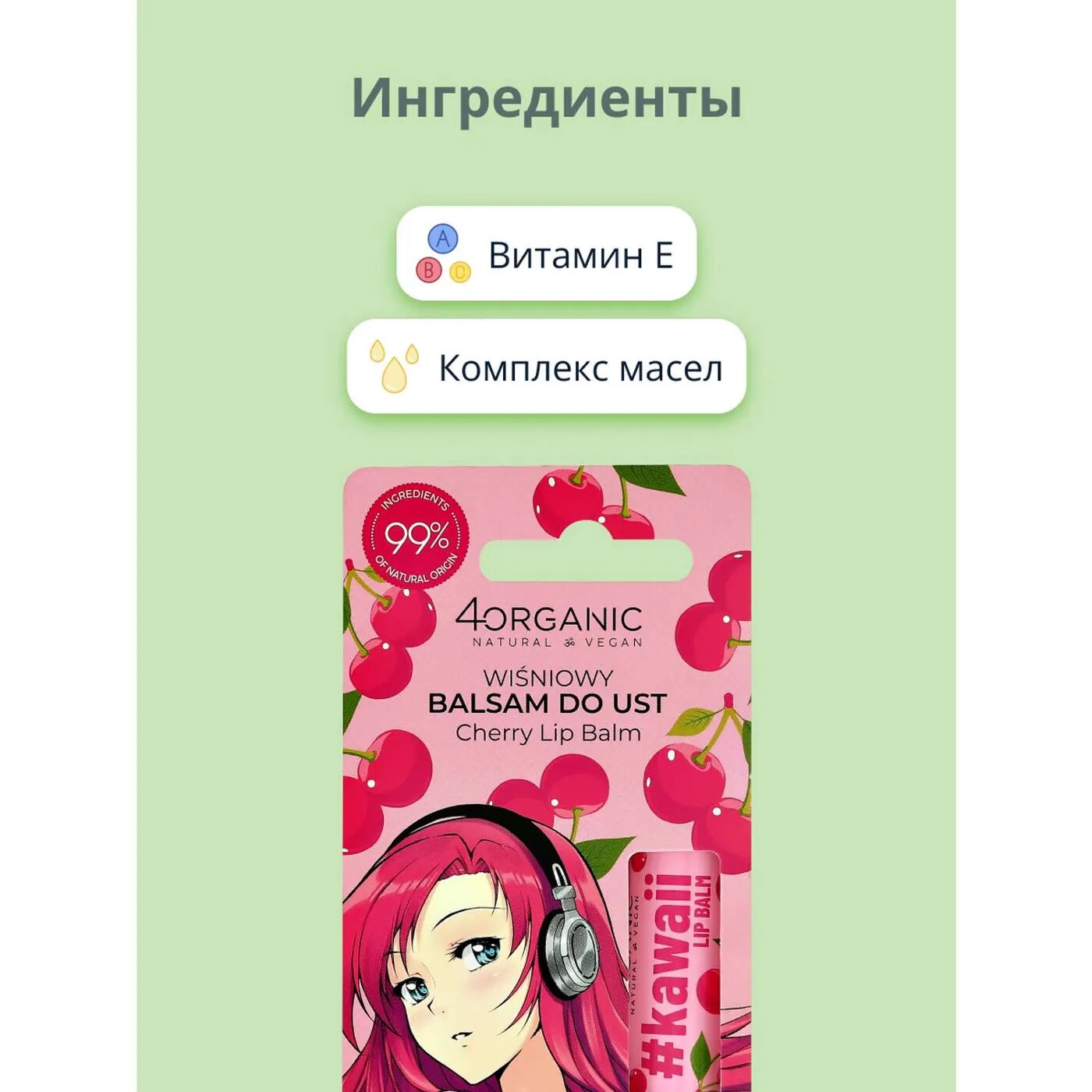 Бальзам для губ 4ORGANIC #KAWAII Вишня 5 г интересное: