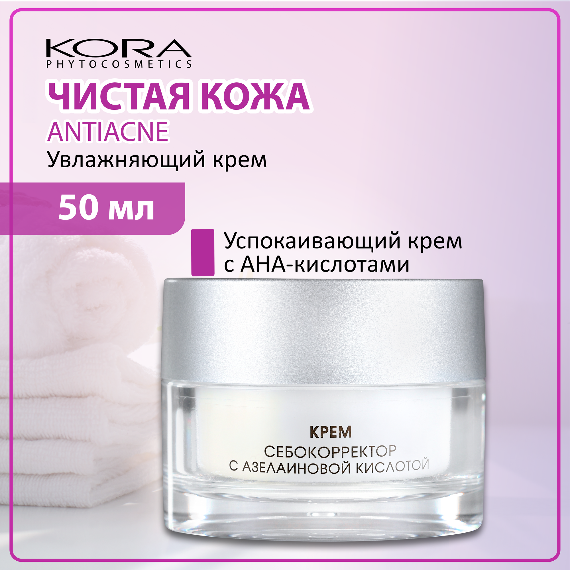 Крем для лица KORA для жирной и проблемной кожи Anti-Acne с кислотами, увлажняющий, 50 мл
