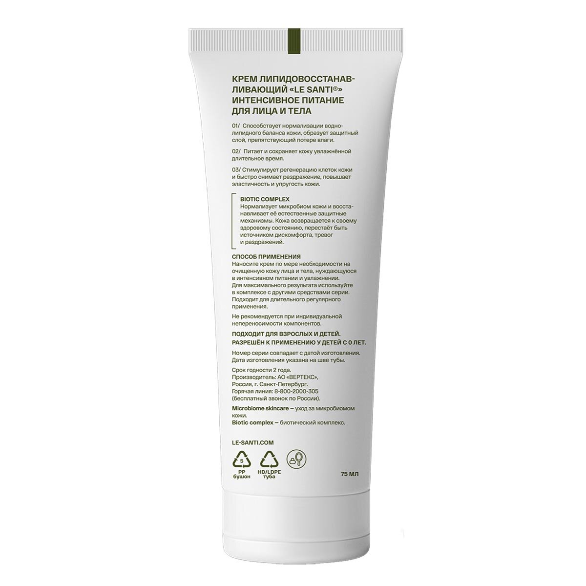 Купить Крем Липидо-восстанавливающий для лица и тела, Интенсивное питание для чувствительной и сухой кожи, 75 мл, LE SANTI