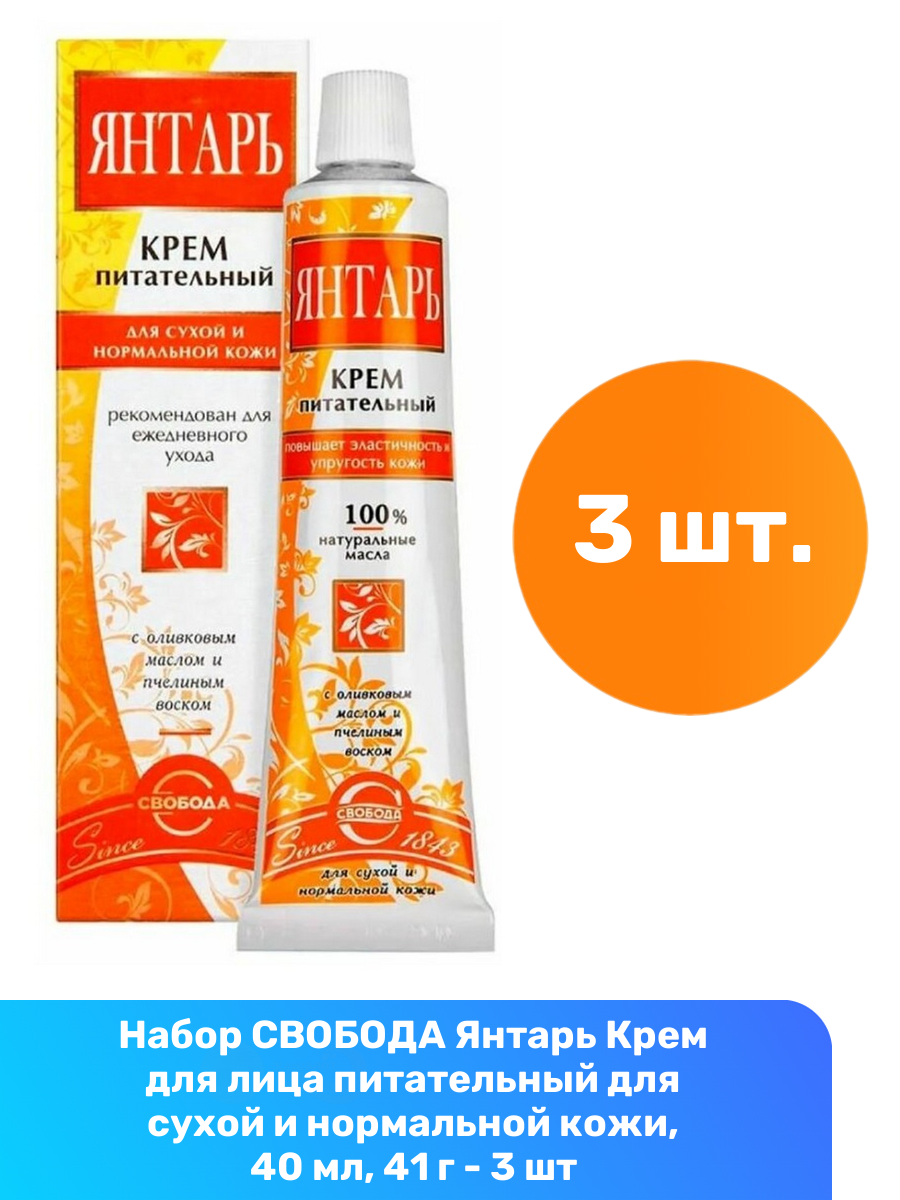 Купить Свобода Янтарь Крем для лица питательный для сухой и нормальной кожи, 40 мл, 41 г - 3 шт