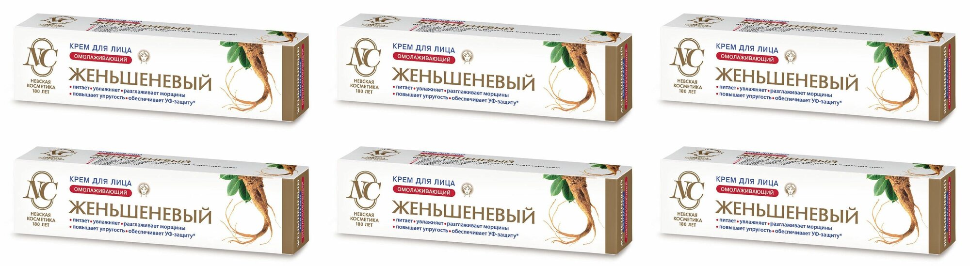 Невская косметика Крем для лица Женьшеневый, омолаживающий, для зрелой кожи, 40 мл, 6 шт