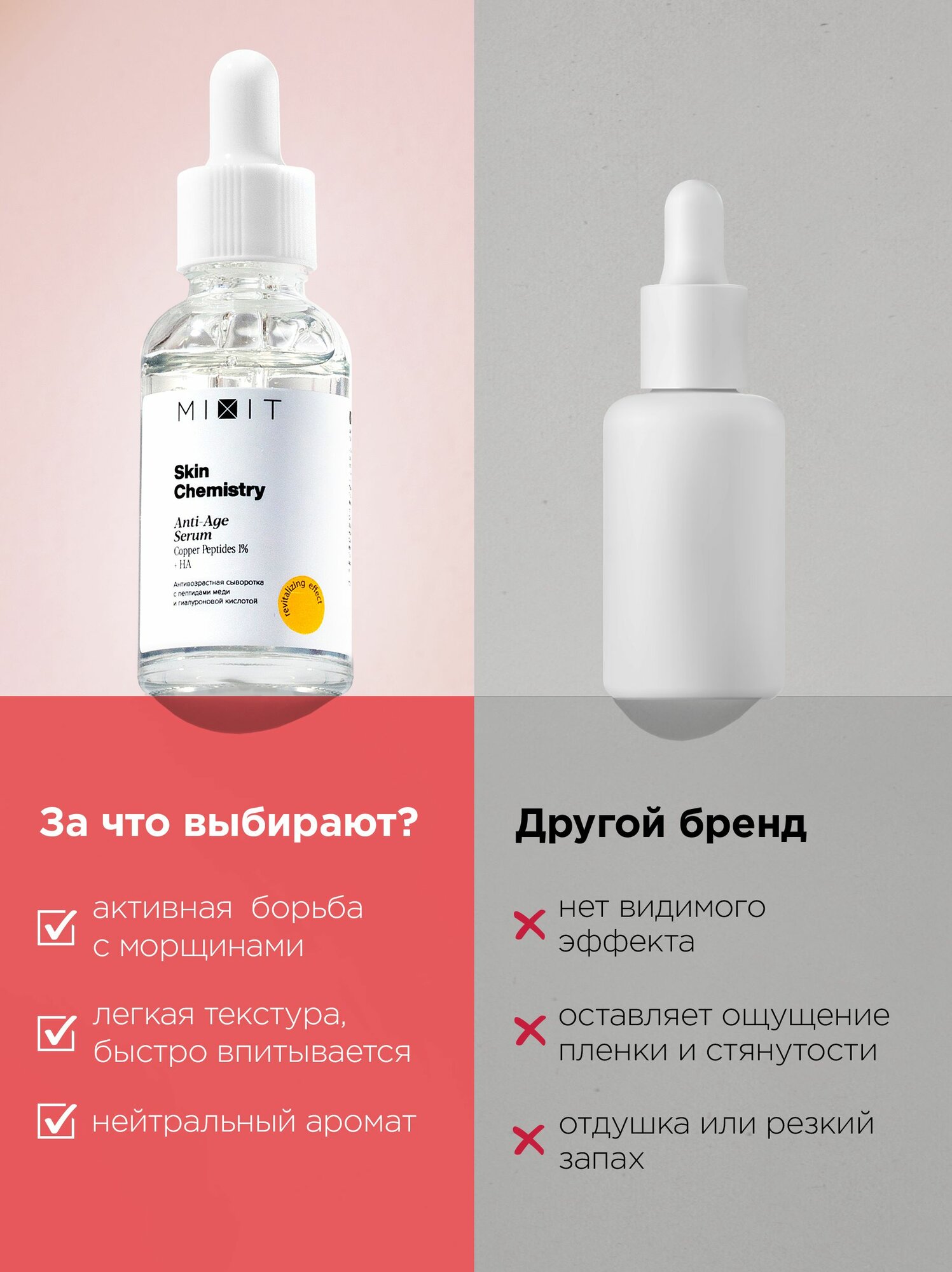 Сыворотка для лица MIXIT SKIN CHEMISTRY с пептидами меди и гиалуроновой кислотой (антивозрастная) 30 мл