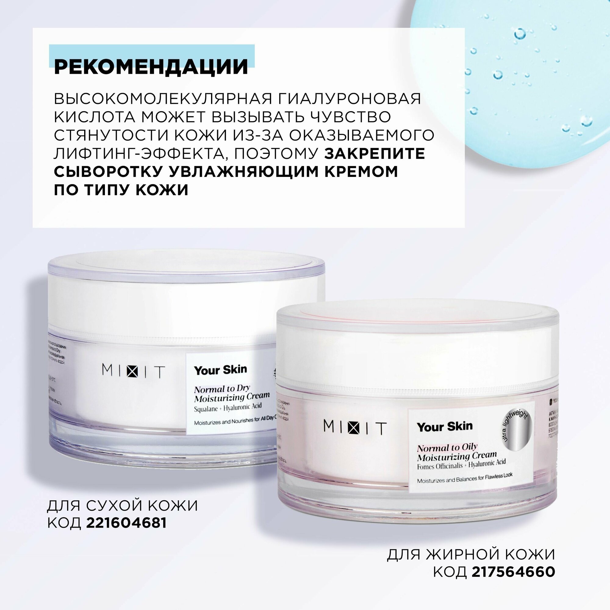 MIXIT Увлажняющий крем для лица с гиалуроновой кислотой YOUR SKIN for Dry Skin, 50 мл