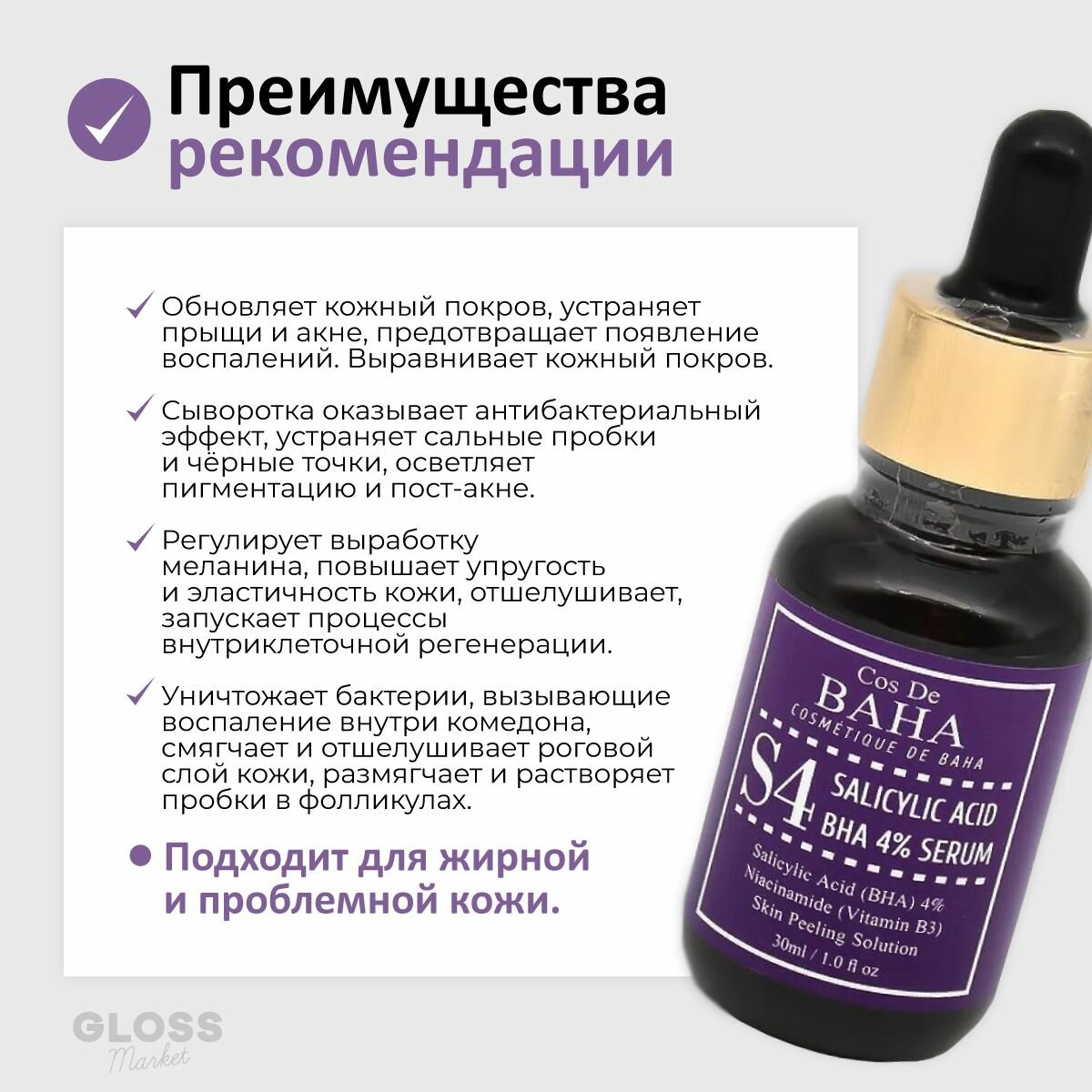 COS DE BAHA Salicylic Acid 4% Serum Сыворотка для жирной кожи лица с салициловой кислотой, 30 мл