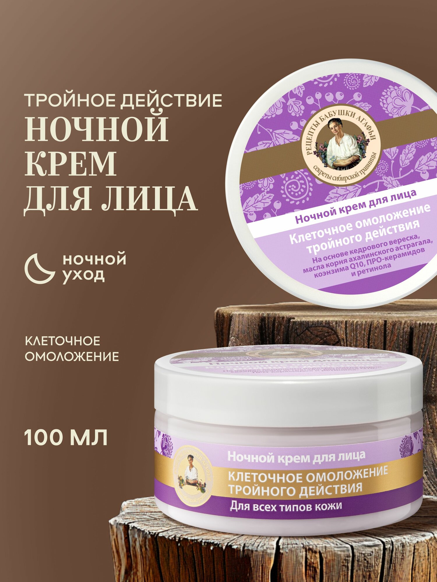 Крем Рецепты бабушки Агафьи ночной клеточное омоложение тройного действия для лица, 100 мл