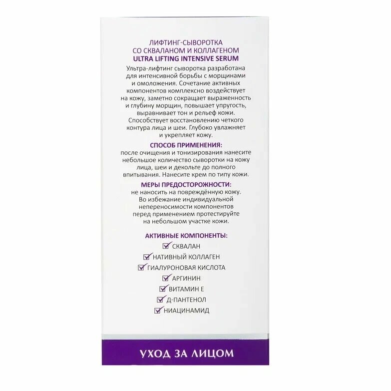 ARAVIA Лифтинг-сыворотка для лица со скваланом и коллагеном Ultra Lifting Intensive Serum, 30 мл интересное:
