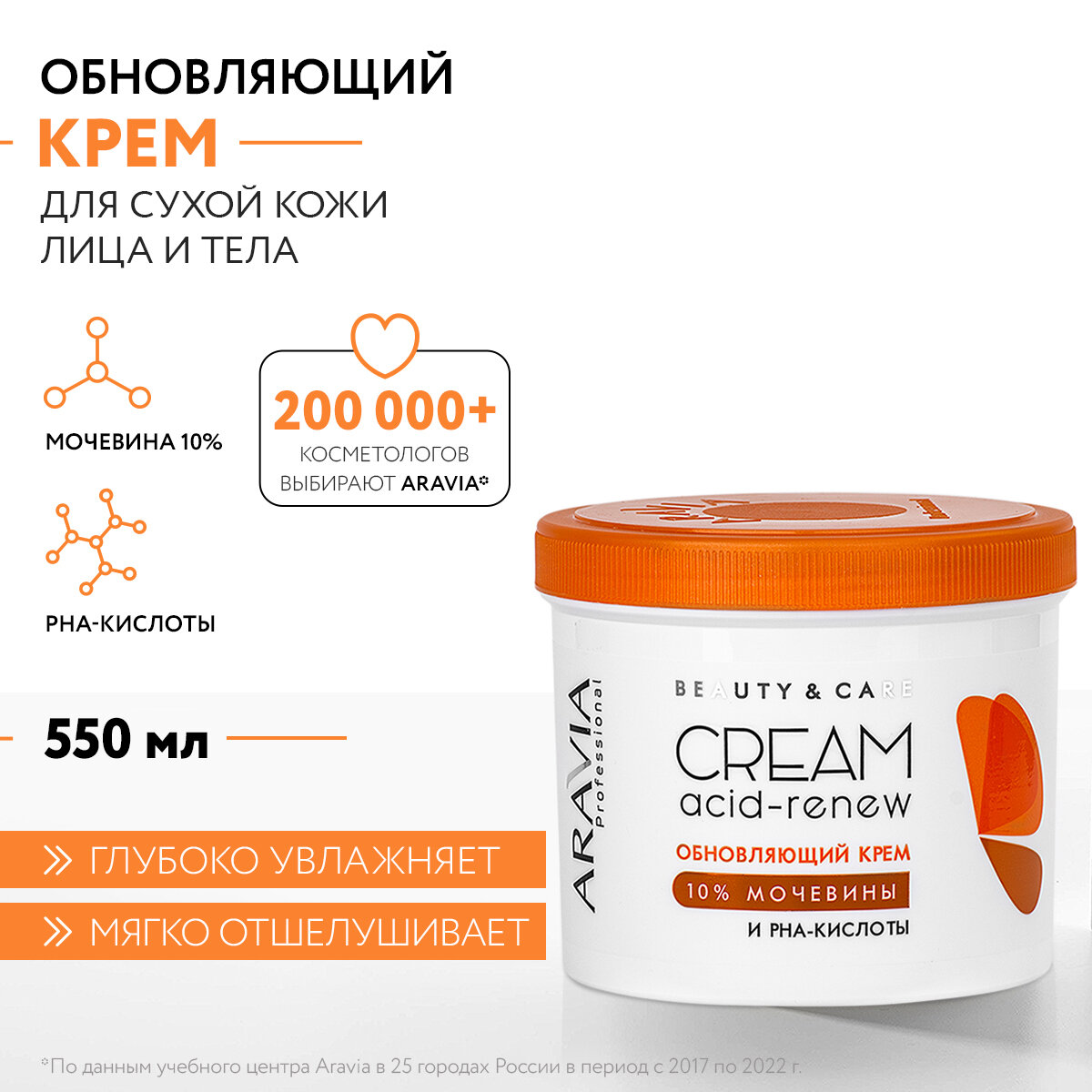 ARAVIA Обновляющий крем с PHA-кислотами и мочевиной (10%) Acid-renew Cream, 550 мл интересное:
