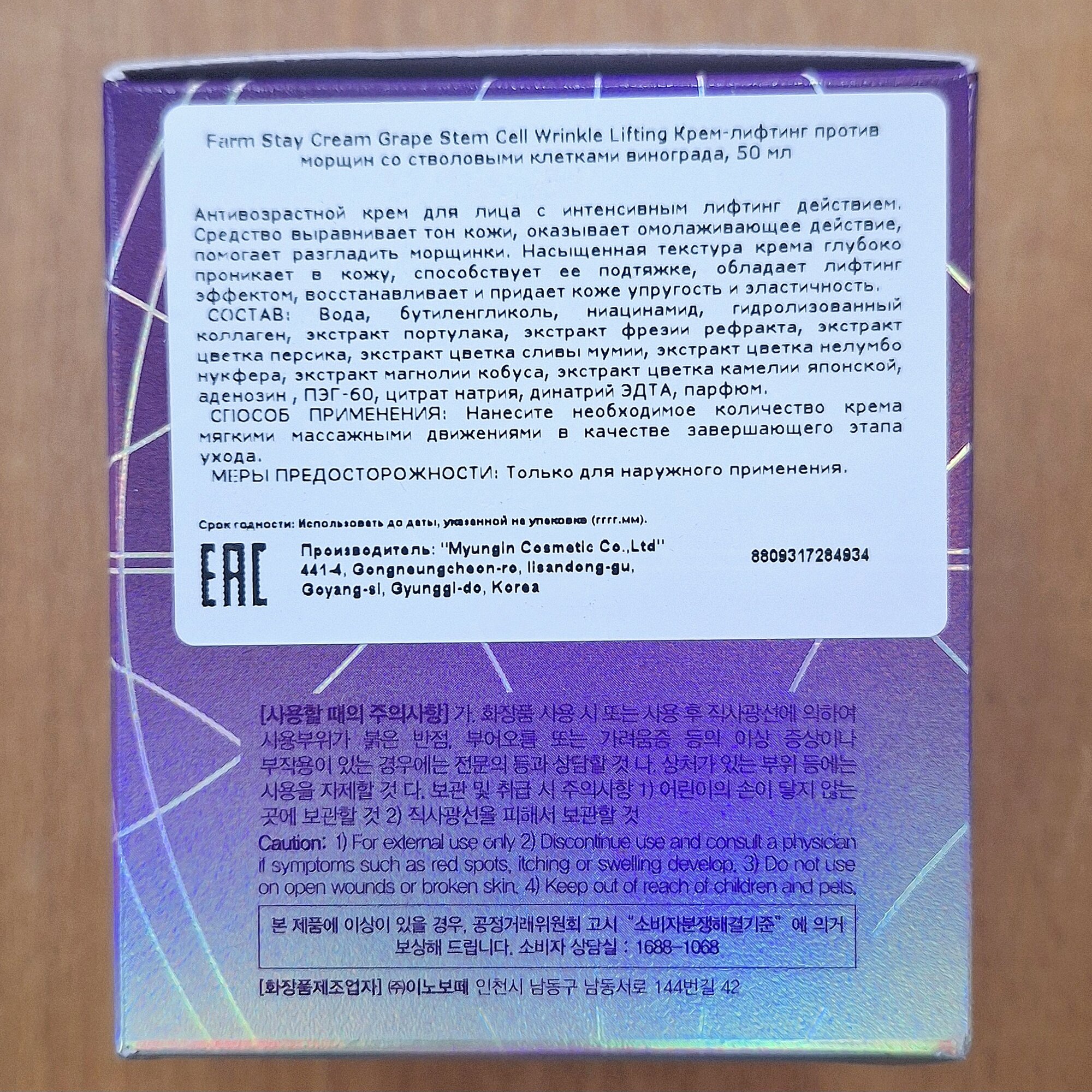 FarmStay Крем для лица увлажняющий с лифтинг эффектом с фитостволовыми клетками винограда, 50мл, Корея GRAPE STEM CELL WRINKLE LIFTING CREAM интересное: