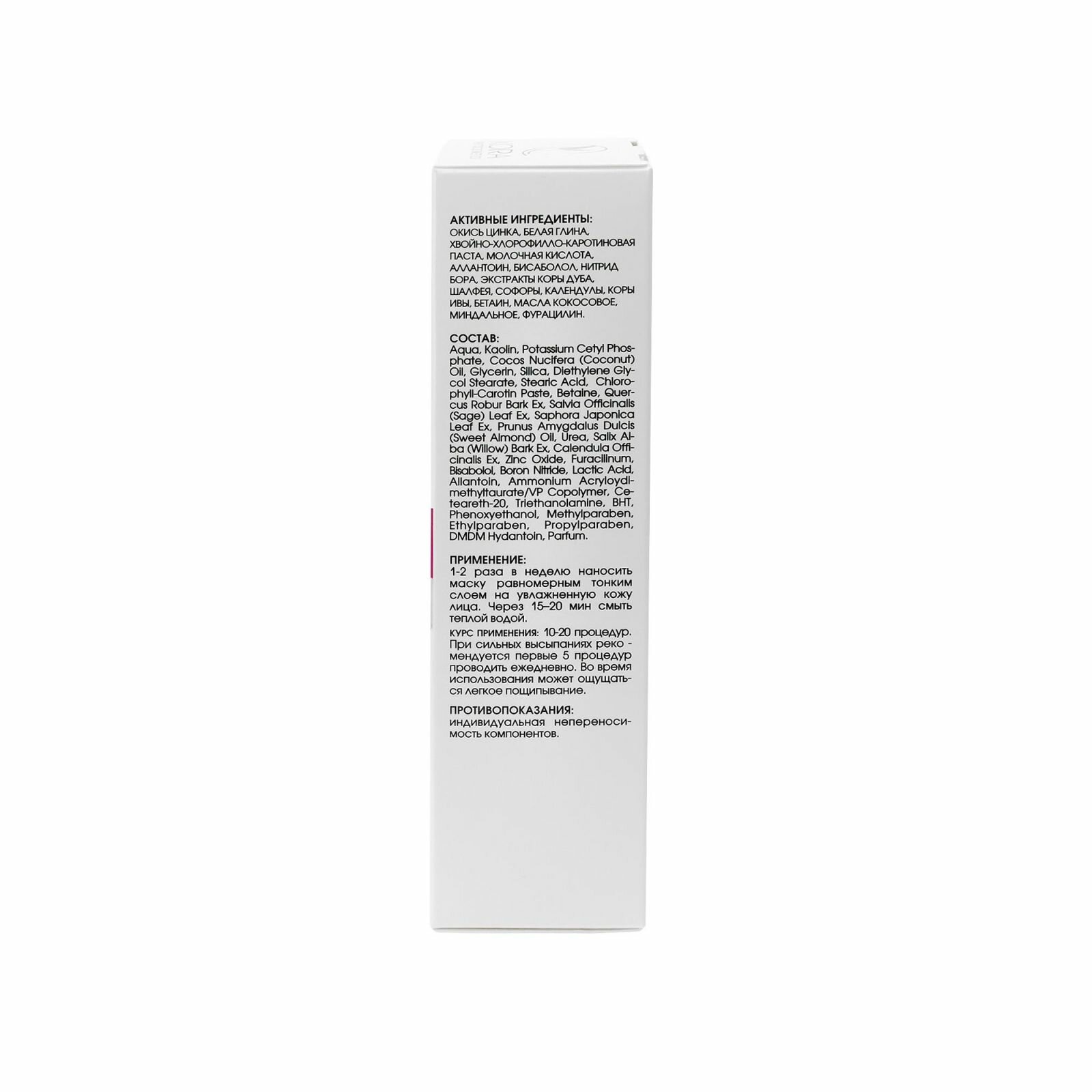 | Способ применения | 1-2 раза в неделю наносить маску равномерным тонким слоем на увлажненную кожу лица. Через 15–20 мин смыть теплой водой. Нанести «Сыворотку-флюид для жирной и комбинированной кожи» и/или «Крем увлажняющий для жирной и комбинированной кожи» |