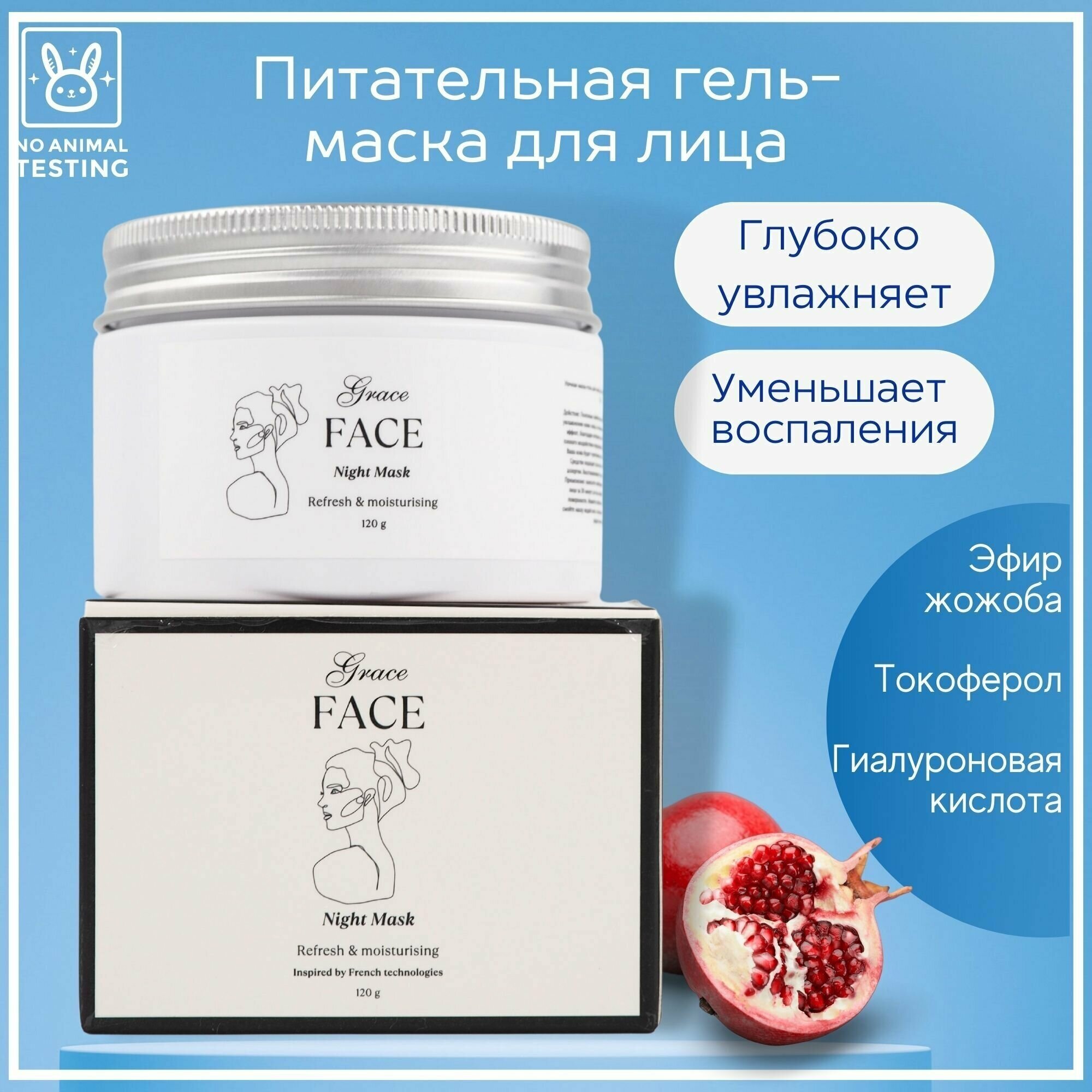 Гель-маска для лица Grace FACE с экстрактом граната 120 г, увлажняющая питательная интересное: