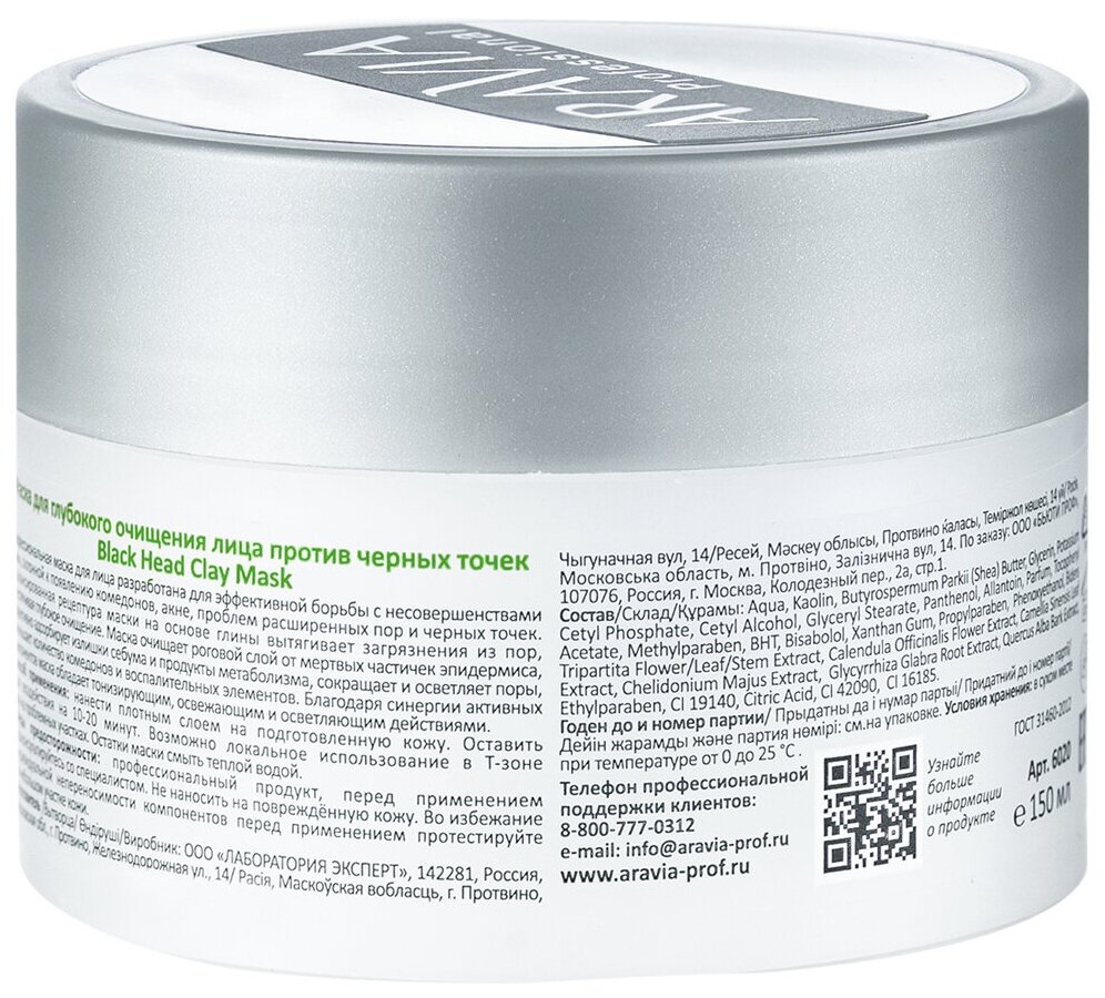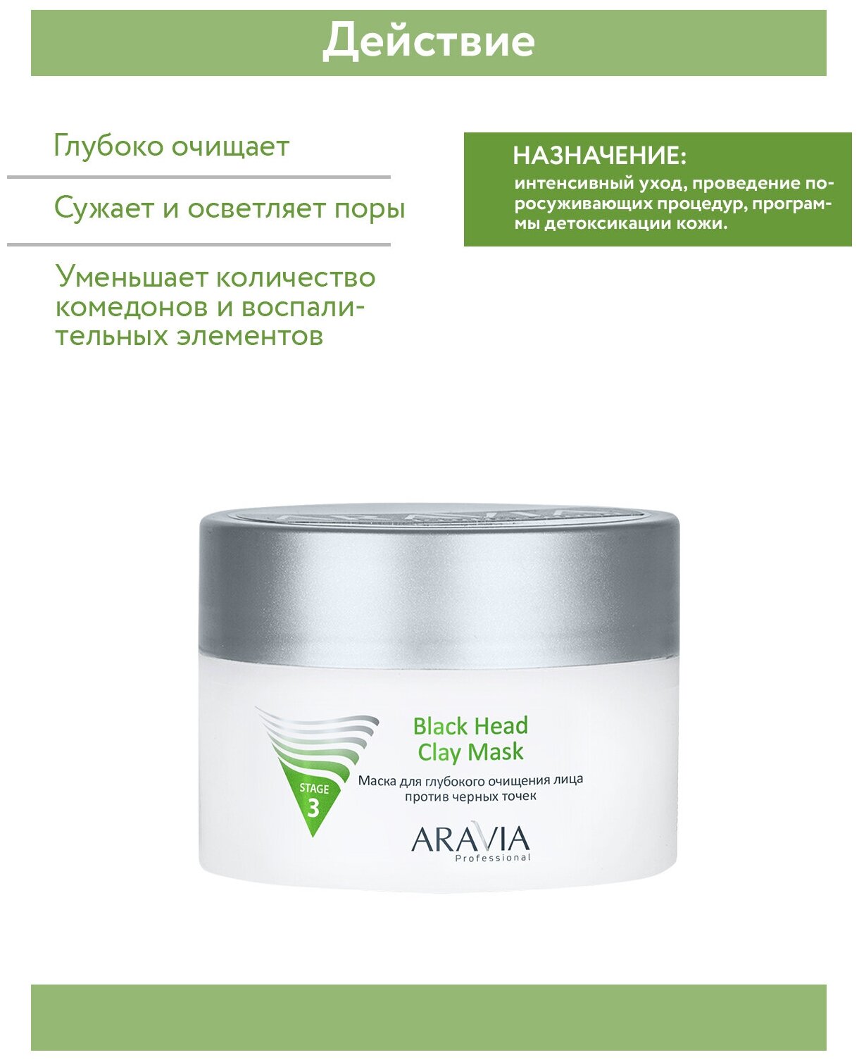 ARAVIA Маска для глубокого очищения лица против черных точек Black Head Clay Mask, 150 мл интересное: