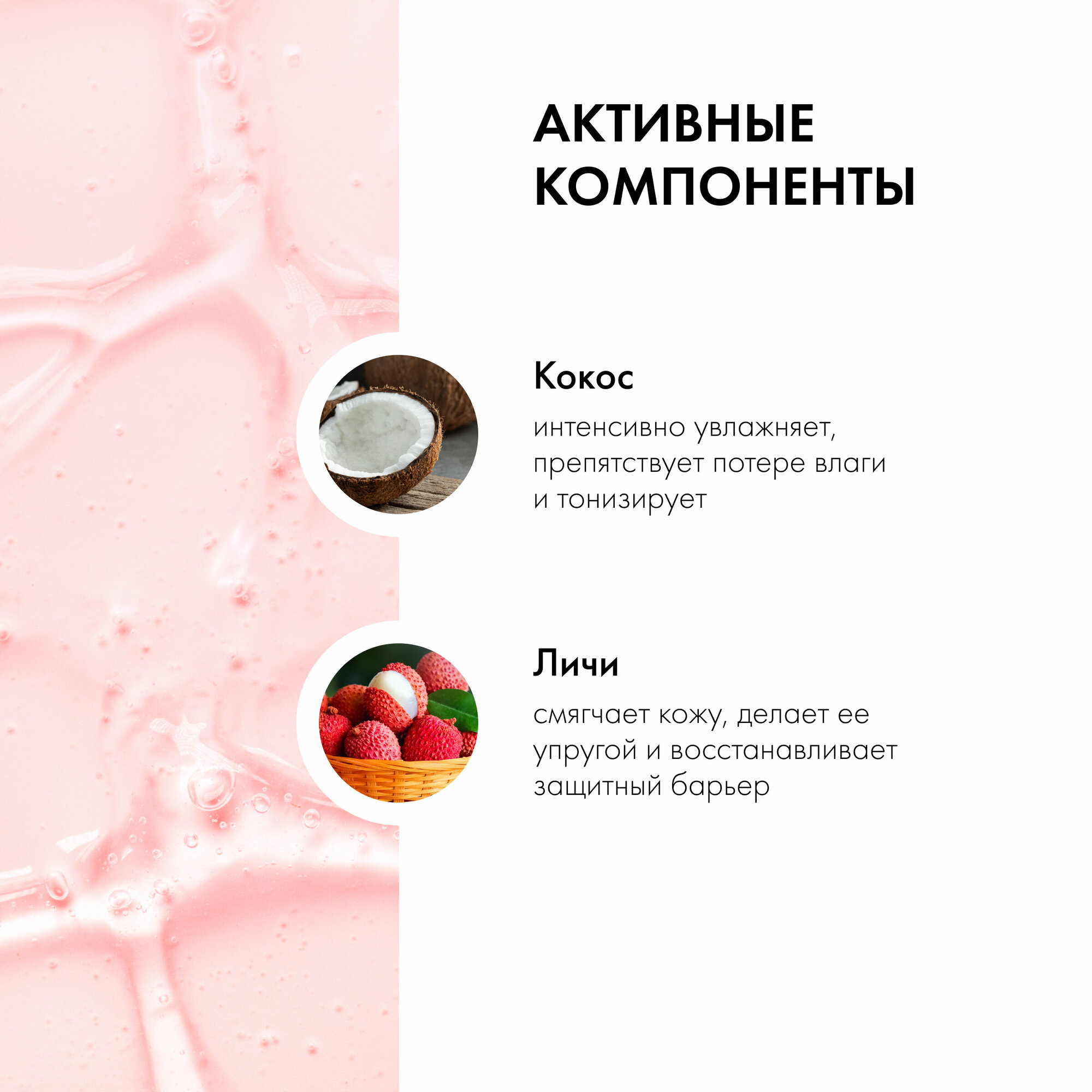 | Активный ингредиент | аминокислоты / витамин A (ретинол) / витамин C / витамин E / витамин K / кокосовое молоко |