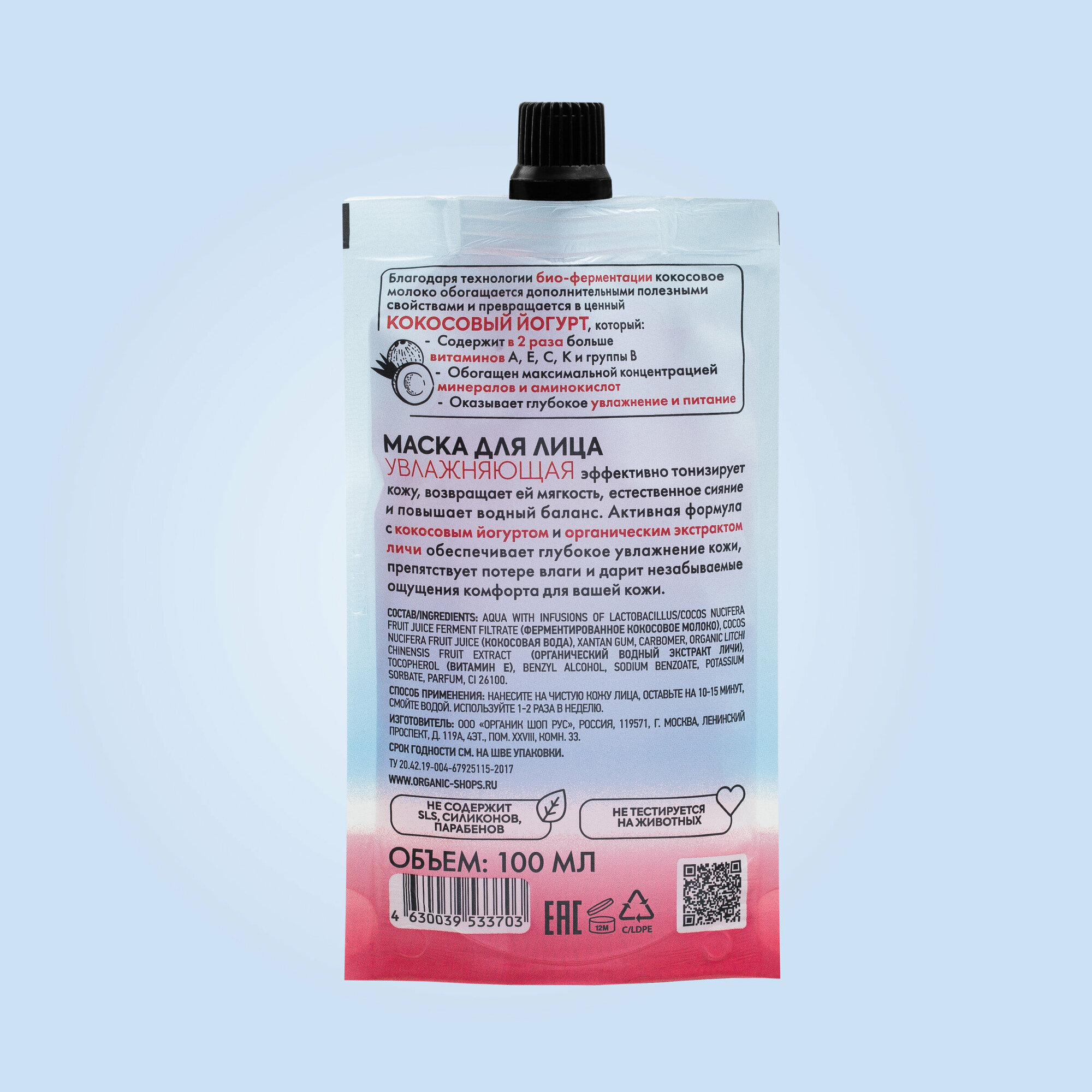 Маска для лица «Увлажняющая» Organic Shop, Coconut Yogurt, 100 мл интересное: