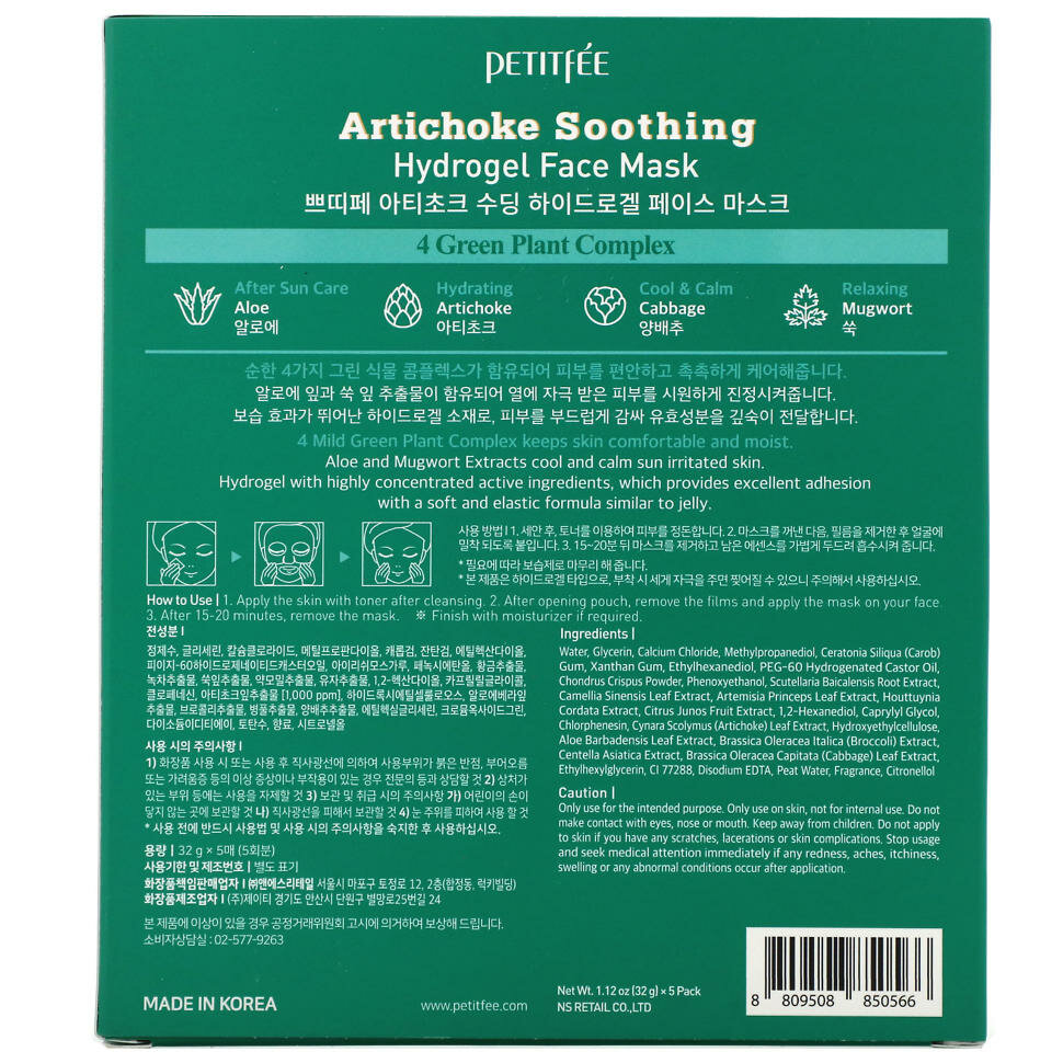 Petitfee Гидрогелевая маска Artichoke Soothing с экстрактом артишока, 32 г, 5 уп.