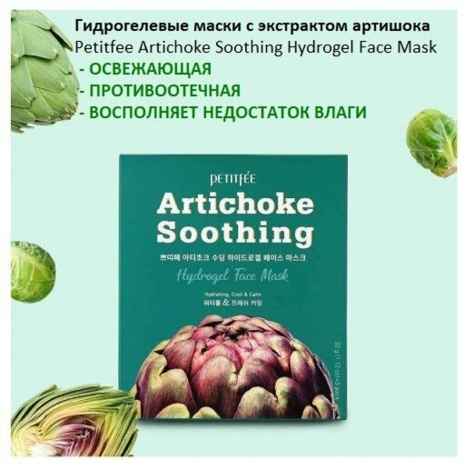 Купить Противоотечная гидрогелевая маска с экстрактом артишока Оригинал. Petitfee Artichoke Soothing Hydrogel Face Mask 32 г