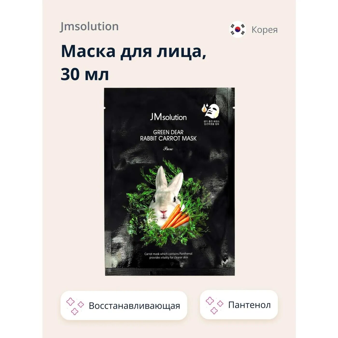 JMsolution Успокаивающая тканевая маска с экстрактом моркови / Green Dear Rabbit Carrot Mask, 30 мл