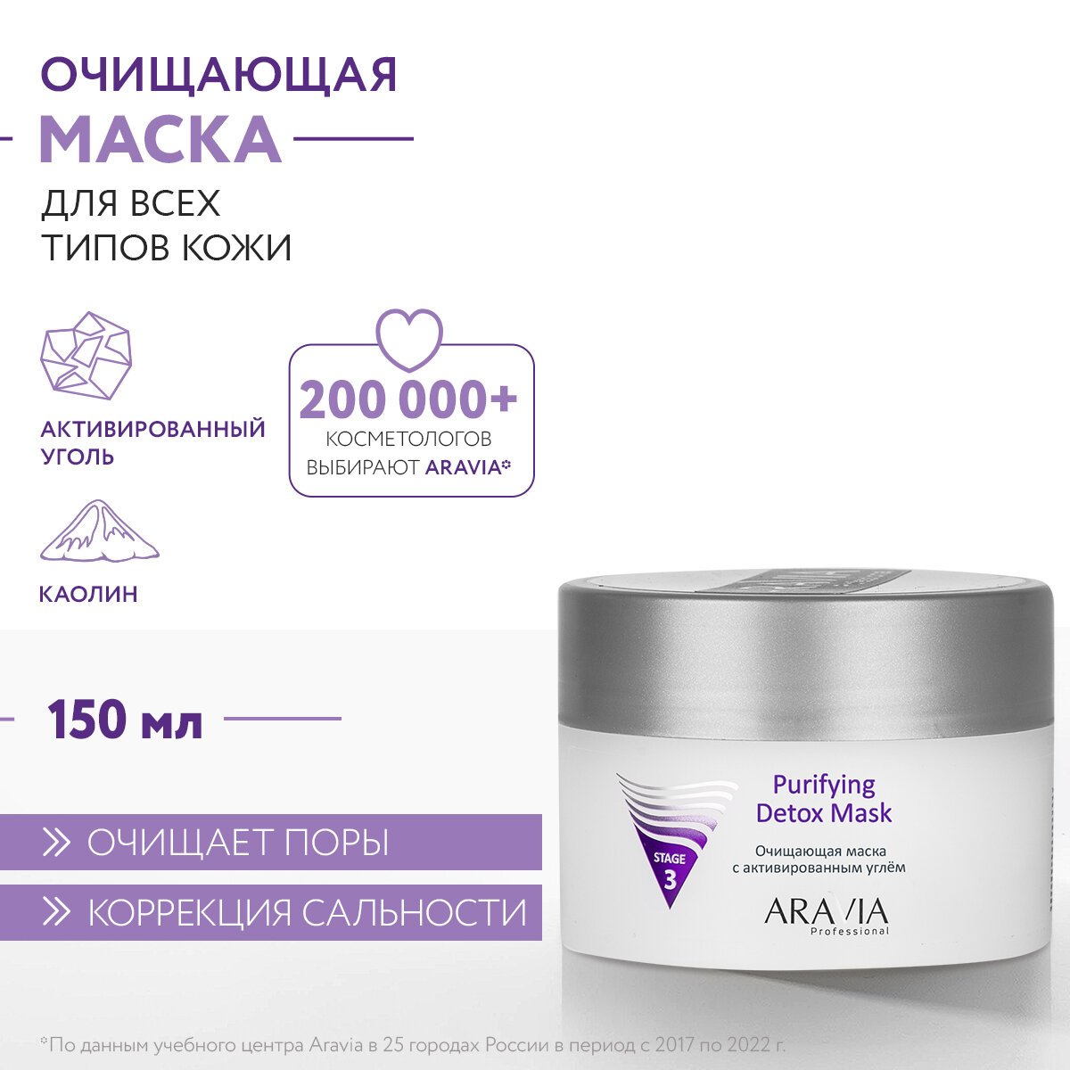 ARAVIA Маска для лица очищающая с активированным углём Purifying Detox Mask, 150 мл интересное: