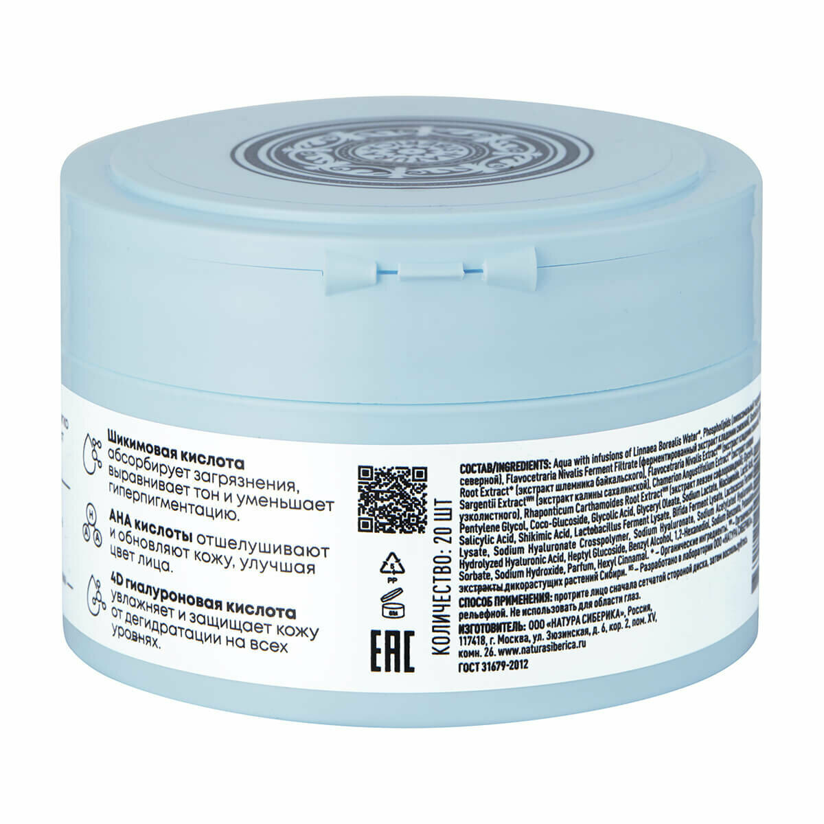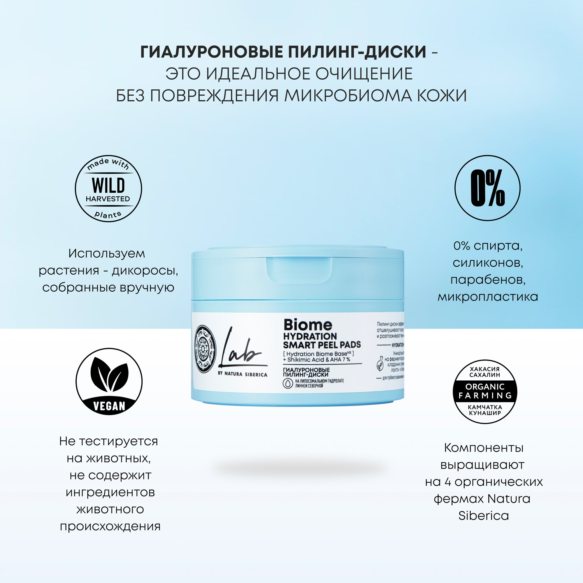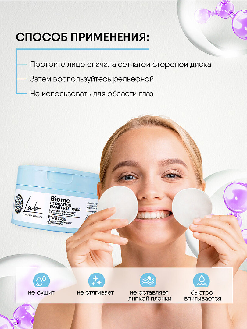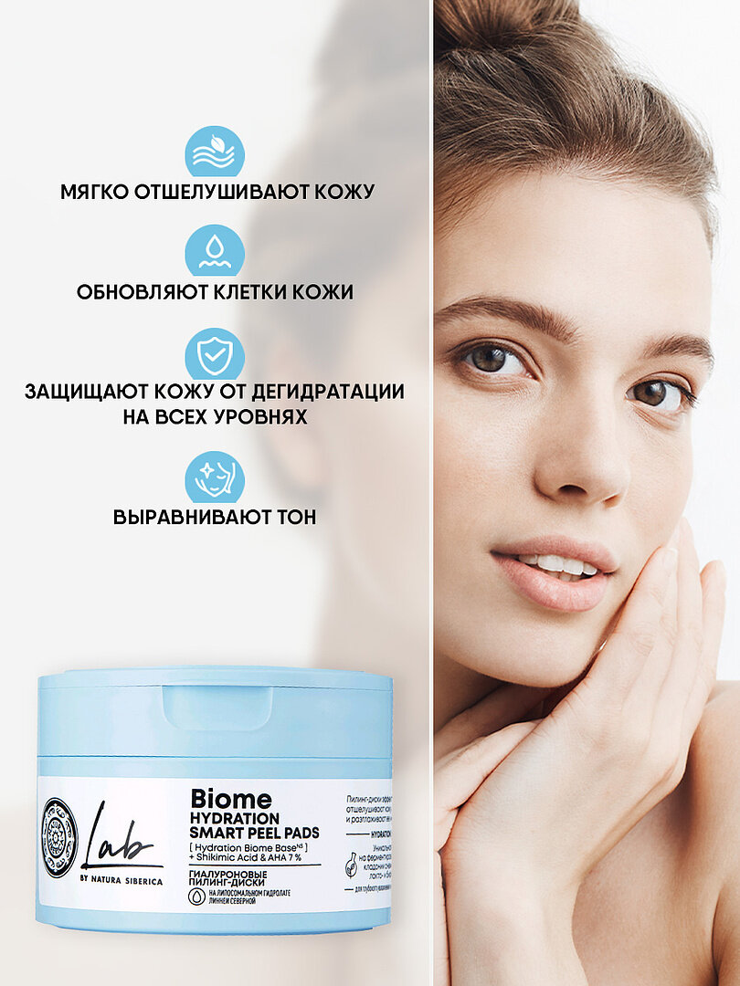 Гиалуроновые пилинг-диски Natura Siberica Lab Biome Hydration, пилинг пэды Лаб биом, 20 шт интересное: